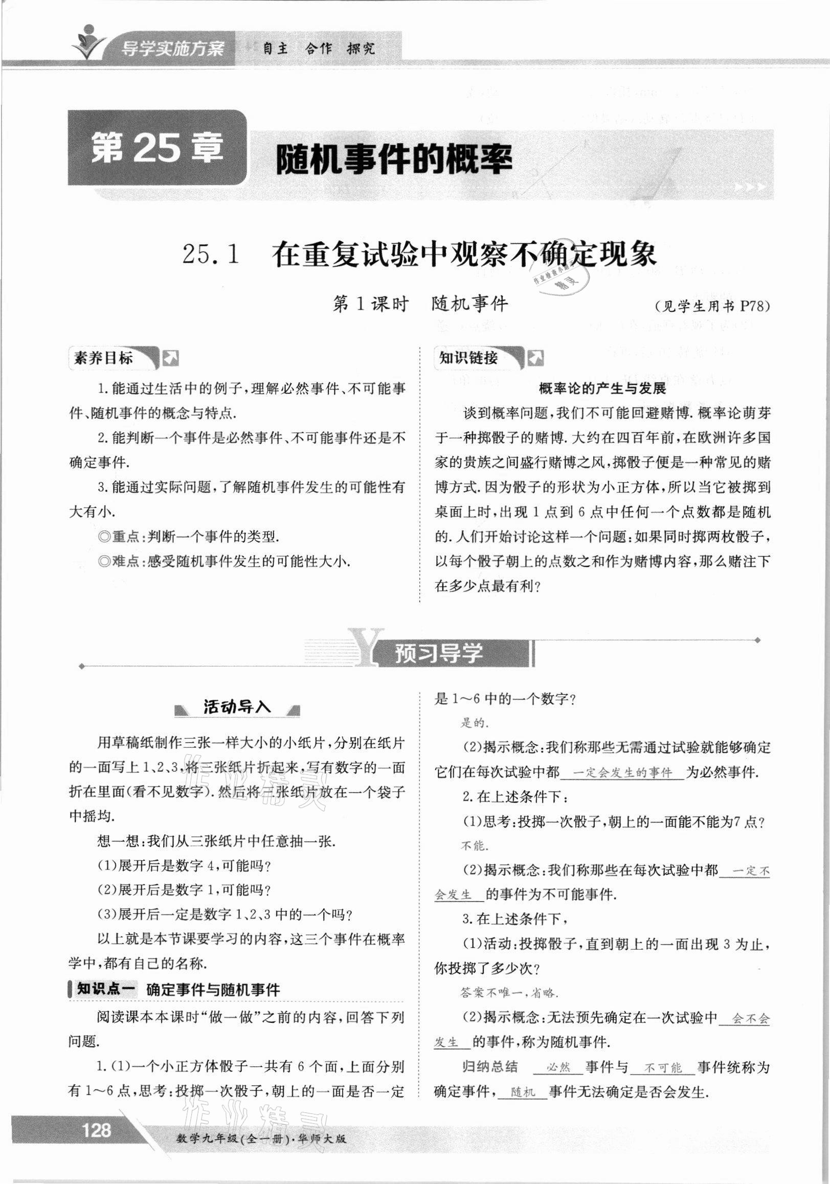 2021年金太阳导学测评九年级数学全一册华师大版