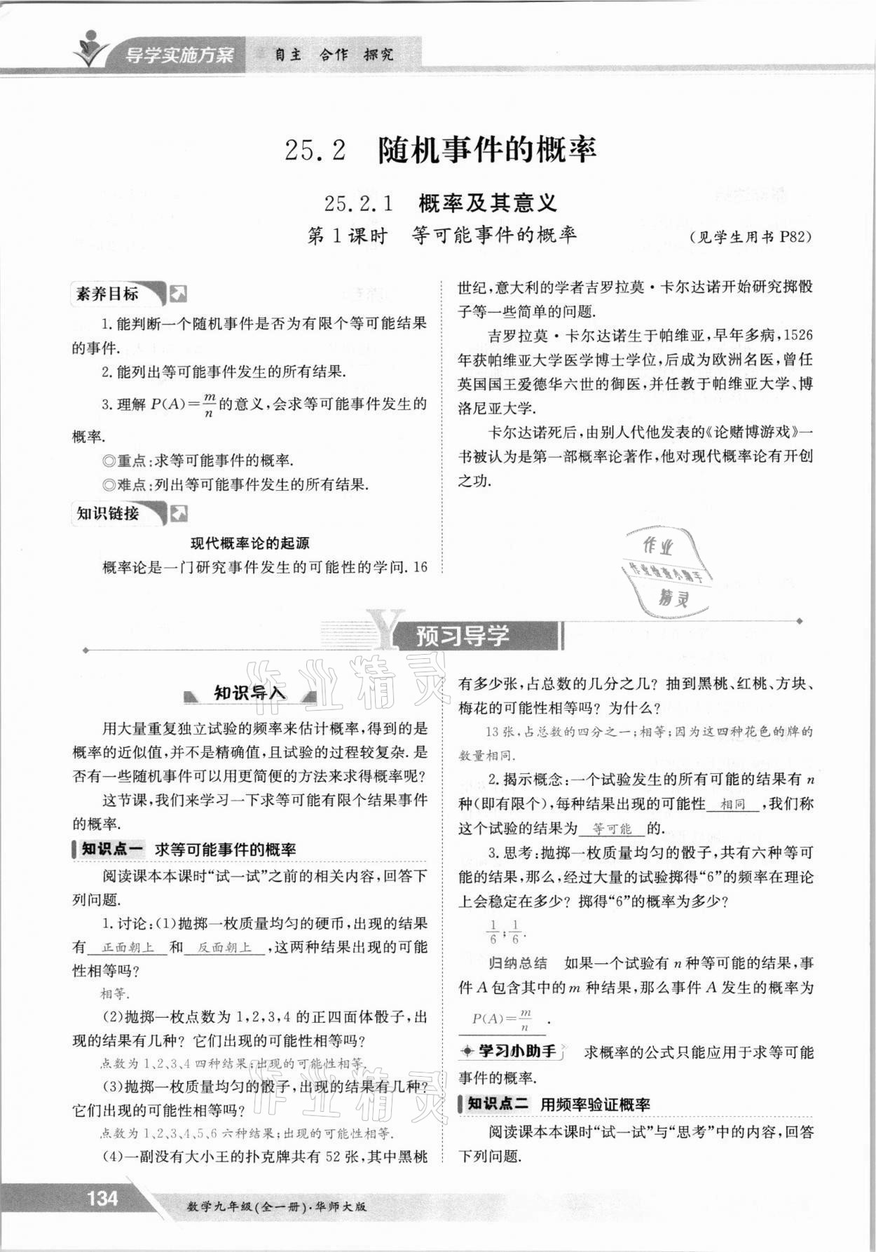 2021年金太阳导学测评九年级数学全一册华师大版