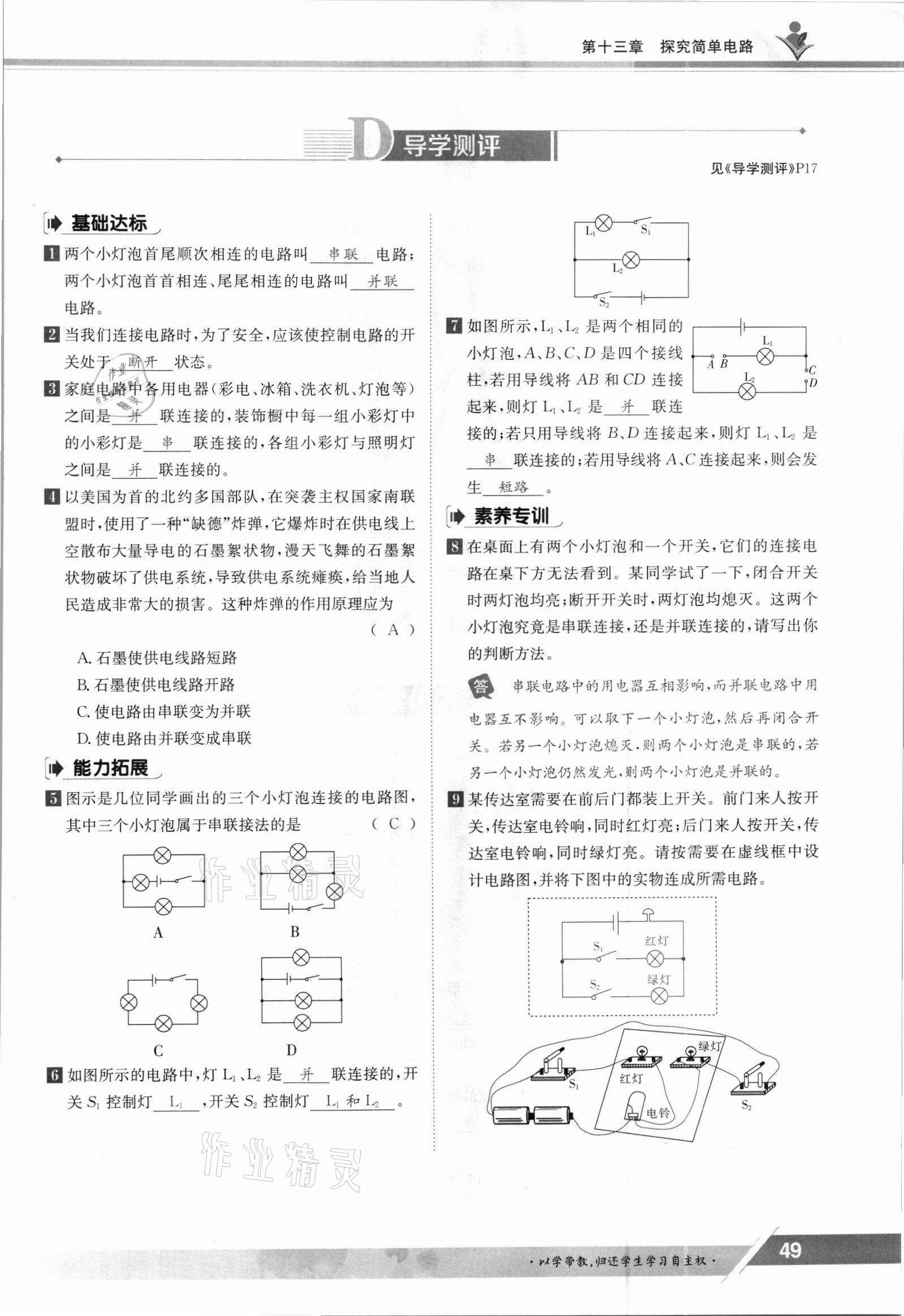 注:目前有些书本章节名称可能整理的还不是很完善,但都是按照顺序排列的,请同学们按照顺序仔细查找。练习册 2021年金太阳导学测评九年级物理全一册沪粤版 答案主要是用来给同学们做完题方便对答案用的,请勿直接抄袭。