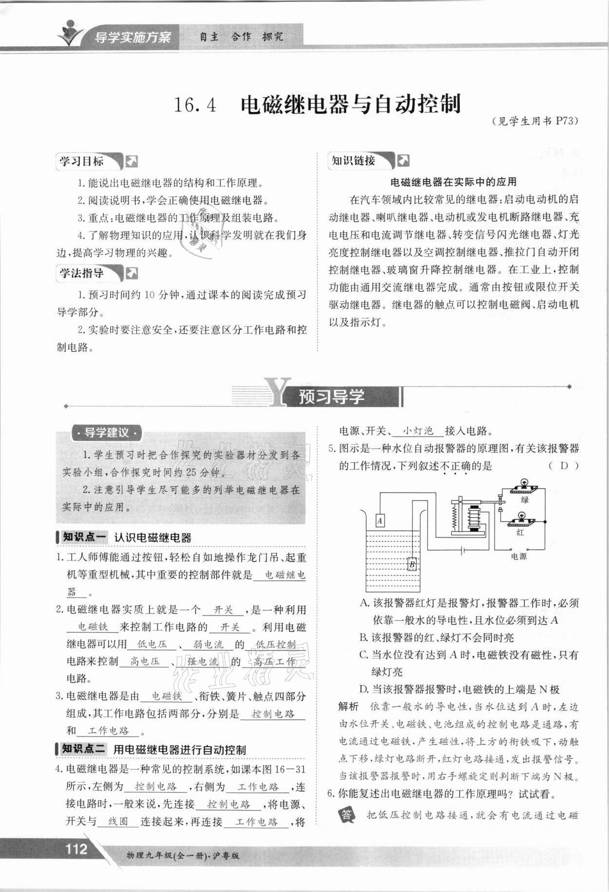 2021年金太阳导学测评九年级物理全一册沪粤版