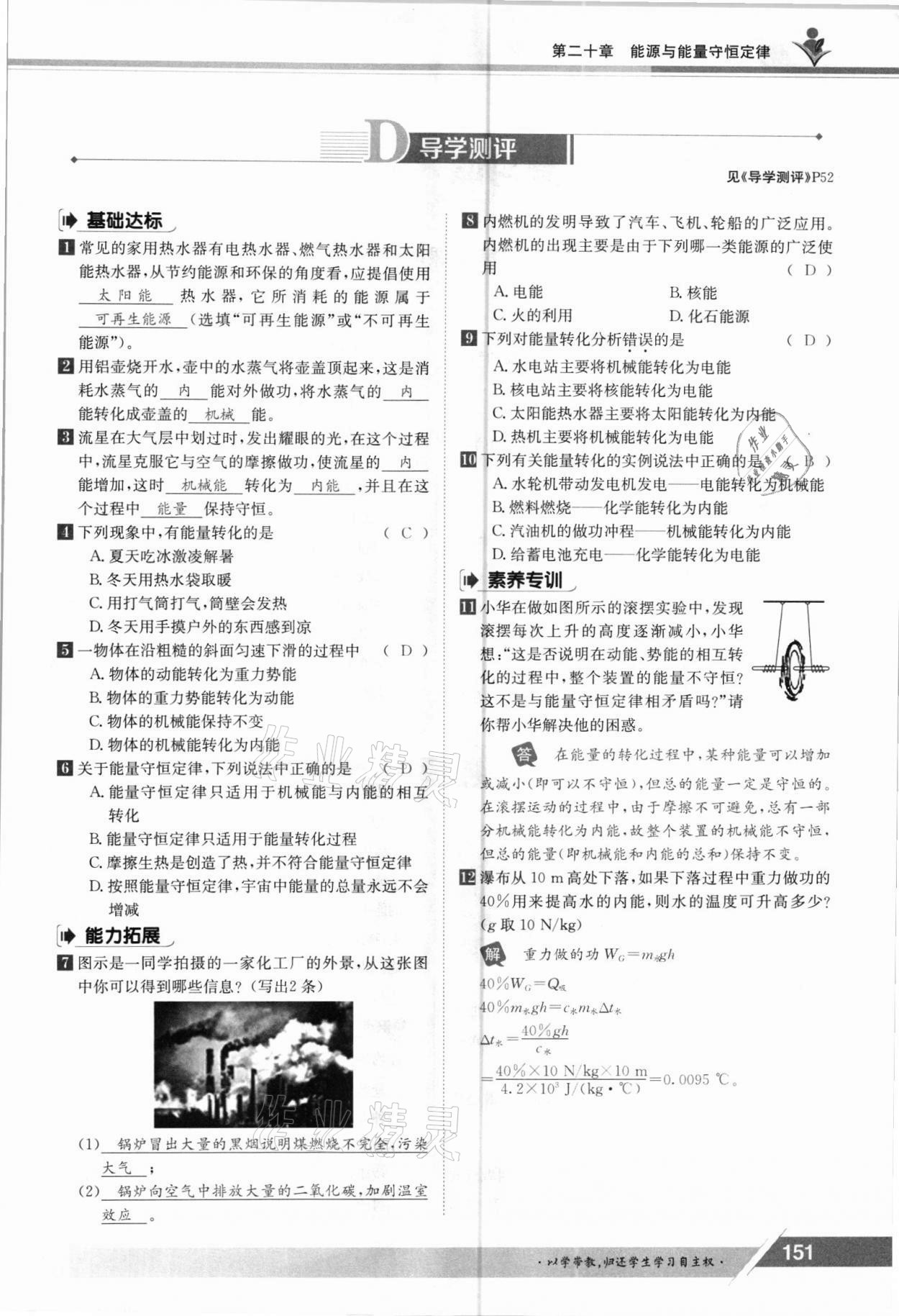 2021年金太阳导学测评九年级物理全一册沪粤版