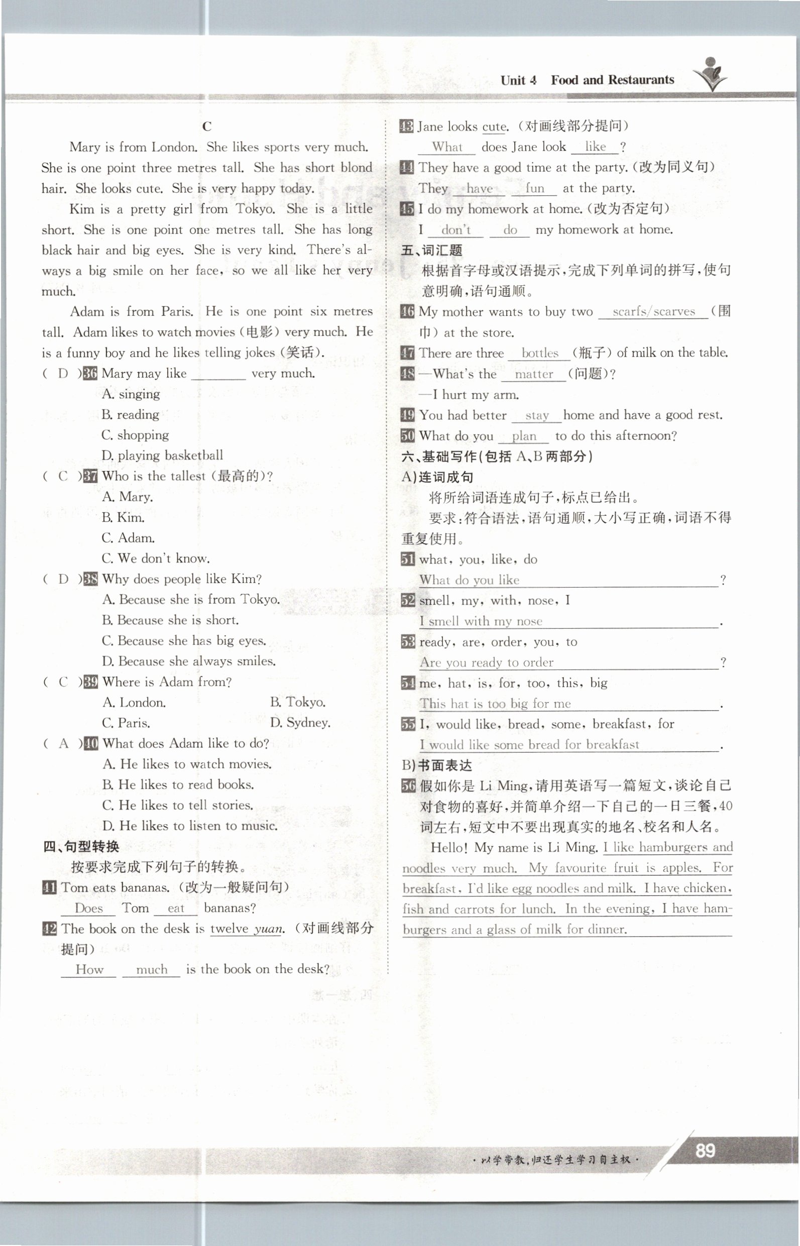 - 参考答案第89页