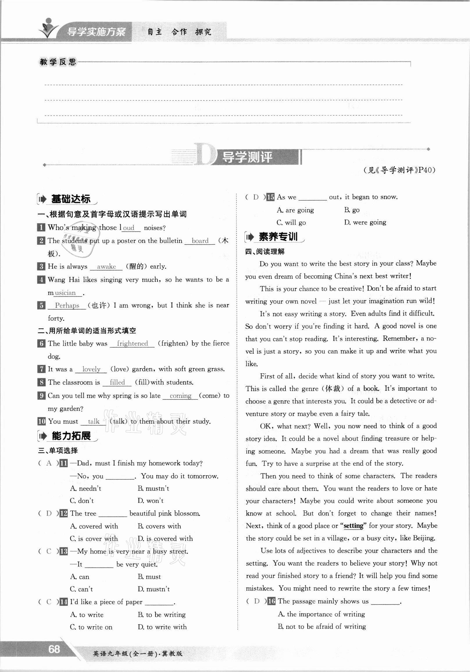 注:目前有些书本章节名称可能整理的还不是很完善,但都是按照顺序排列的,请同学们按照顺序仔细查找。练习册 2021年金太阳导学测评九年级英语全一册冀教版 答案主要是用来给同学们做完题方便对答案用的,请勿直接抄袭。