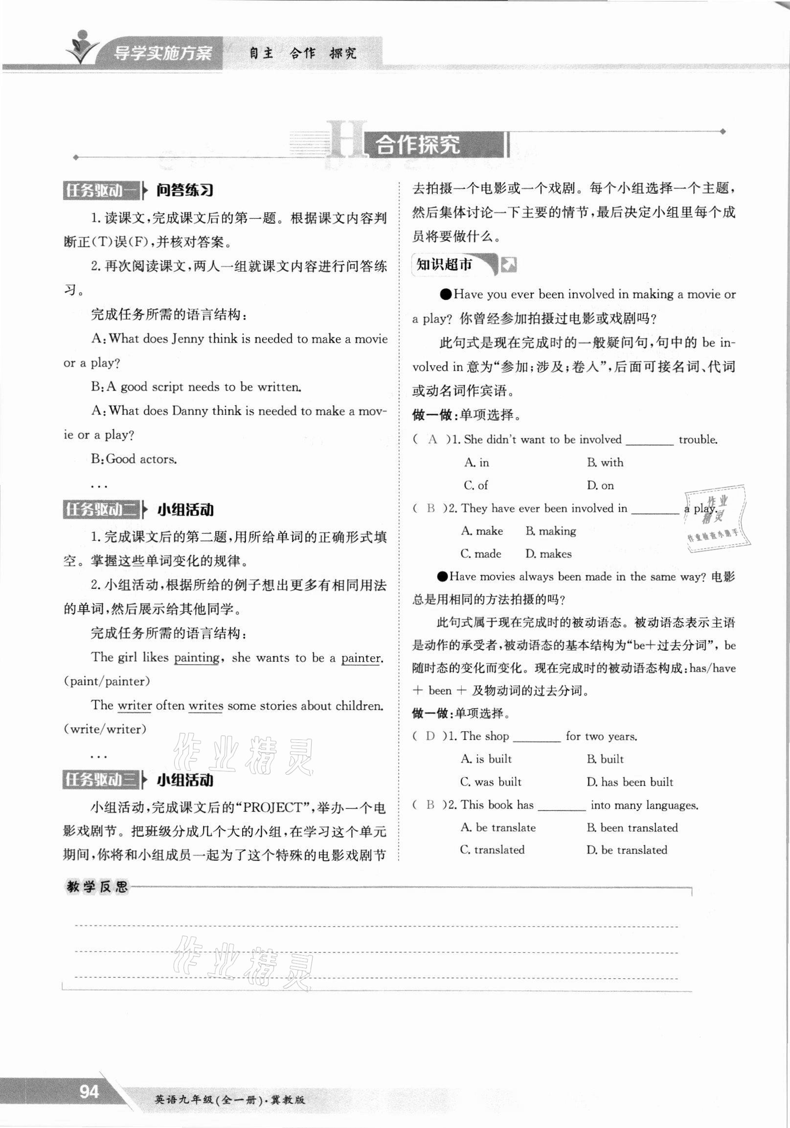 2021年金太阳导学测评九年级英语全一册冀教版