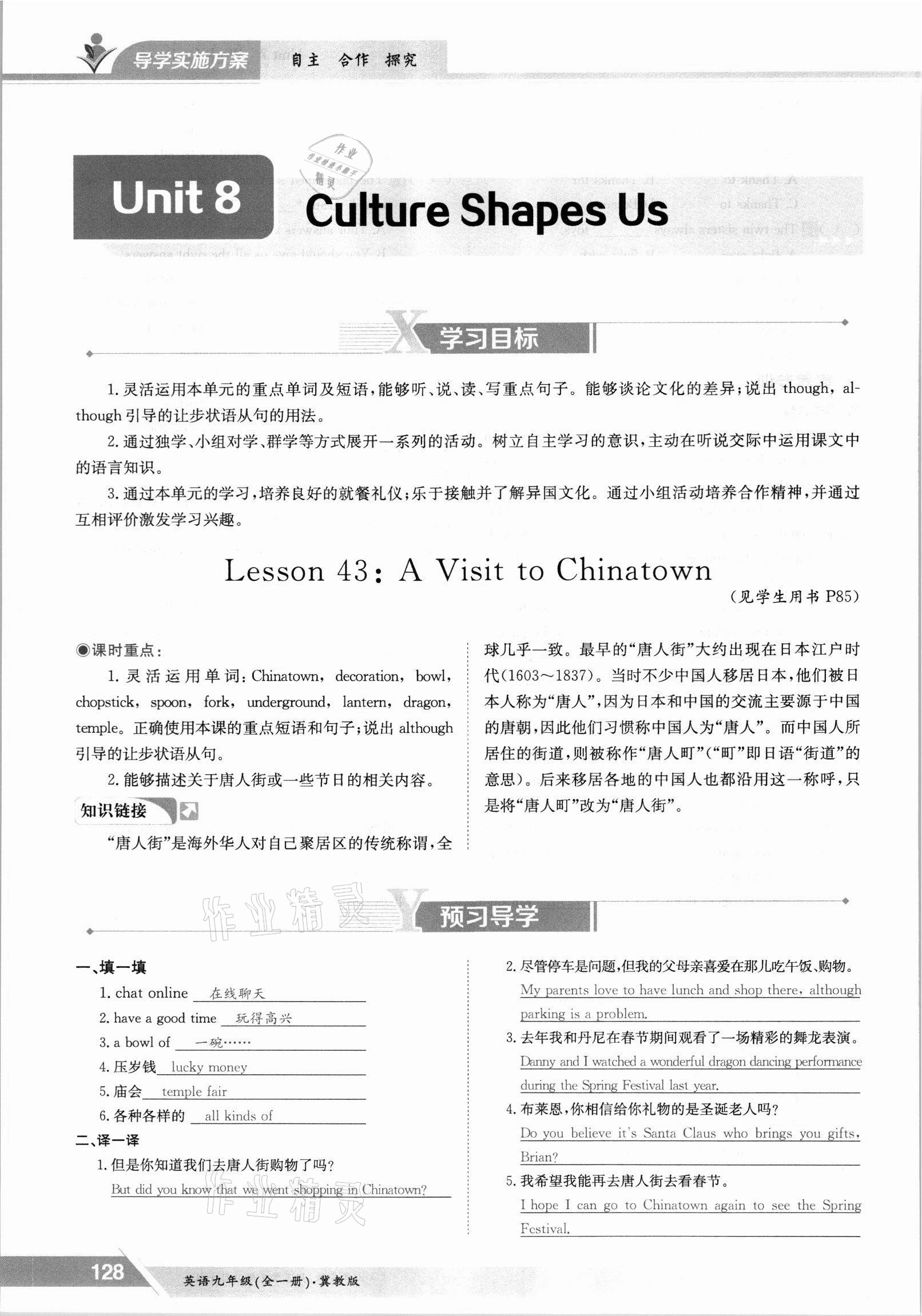 注:目前有些书本章节名称可能整理的还不是很完善,但都是按照顺序排列的,请同学们按照顺序仔细查找。练习册 2021年金太阳导学测评九年级英语全一册冀教版 答案主要是用来给同学们做完题方便对答案用的,请勿直接抄袭。