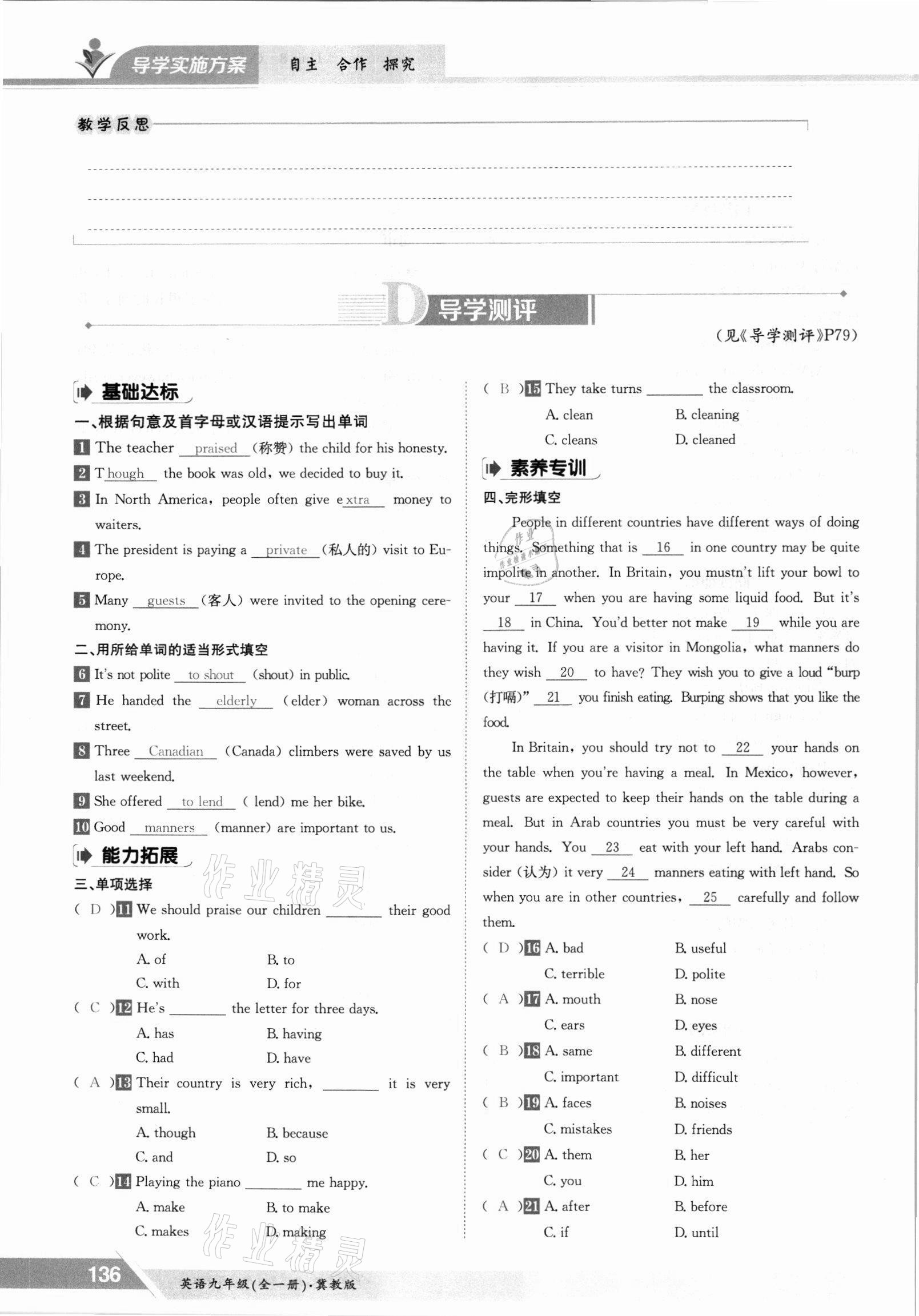 注:目前有些书本章节名称可能整理的还不是很完善,但都是按照顺序排列的,请同学们按照顺序仔细查找。练习册 2021年金太阳导学测评九年级英语全一册冀教版 答案主要是用来给同学们做完题方便对答案用的,请勿直接抄袭。