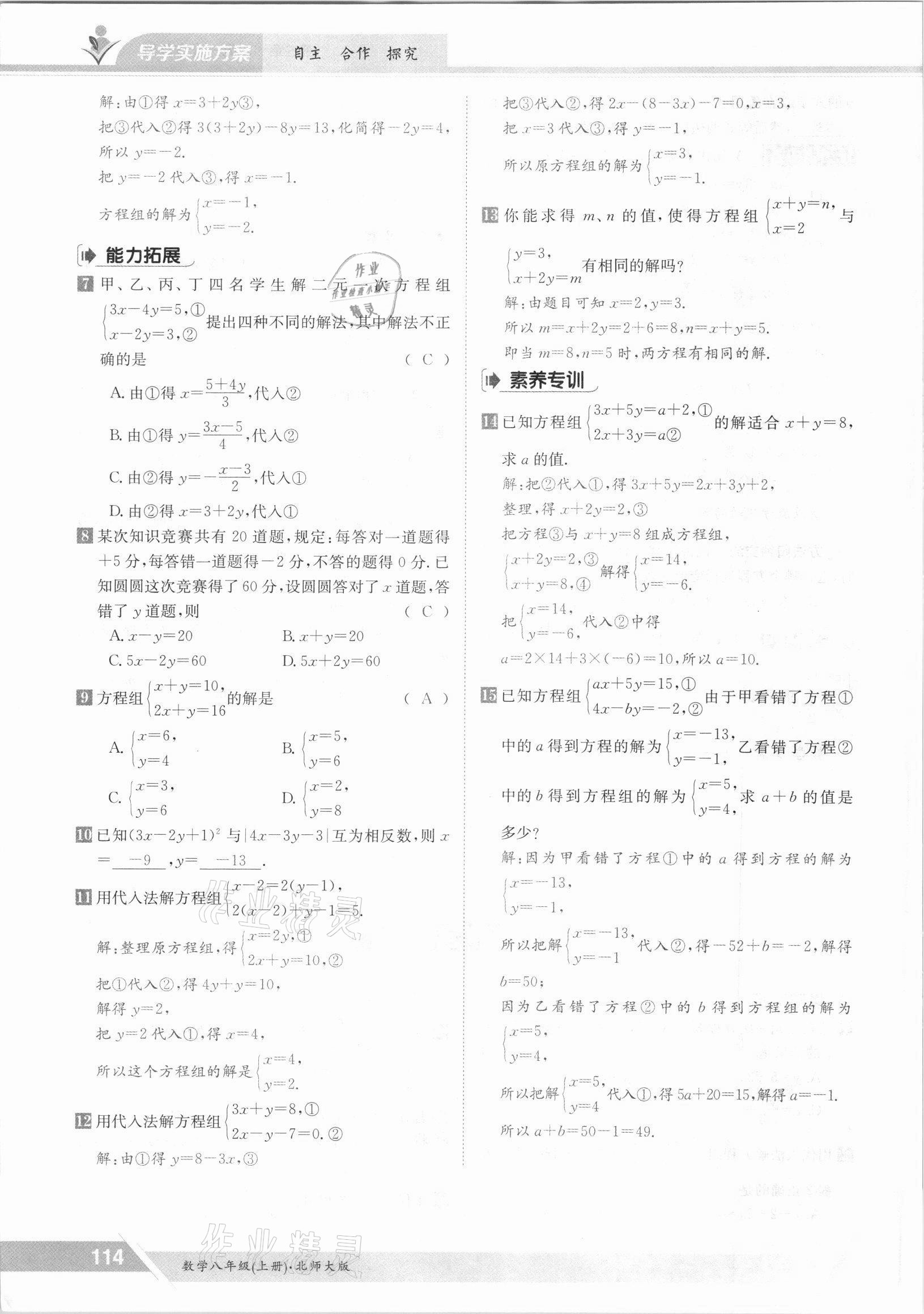 注:目前有些书本章节名称可能整理的还不是很完善,但都是按照顺序排列的,请同学们按照顺序仔细查找。练习册 2021年金太阳导学测评八年级数学上册北师大版 答案主要是用来给同学们做完题方便对答案用的,请勿直接抄袭。