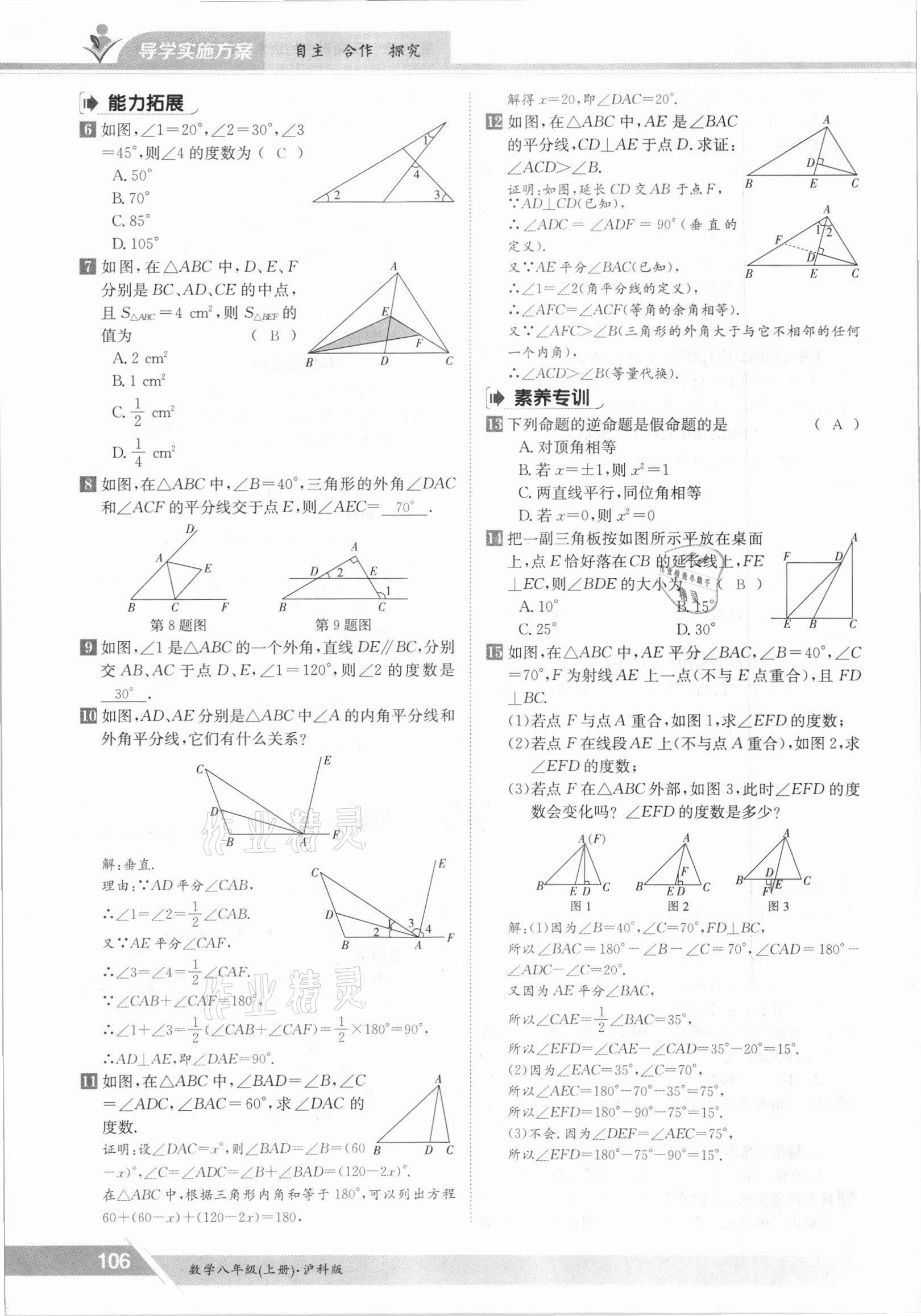 注:目前有些书本章节名称可能整理的还不是很完善,但都是按照顺序排列的,请同学们按照顺序仔细查找。练习册 2021年金太阳导学测评八年级数学上册沪科版 答案主要是用来给同学们做完题方便对答案用的,请勿直接抄袭。