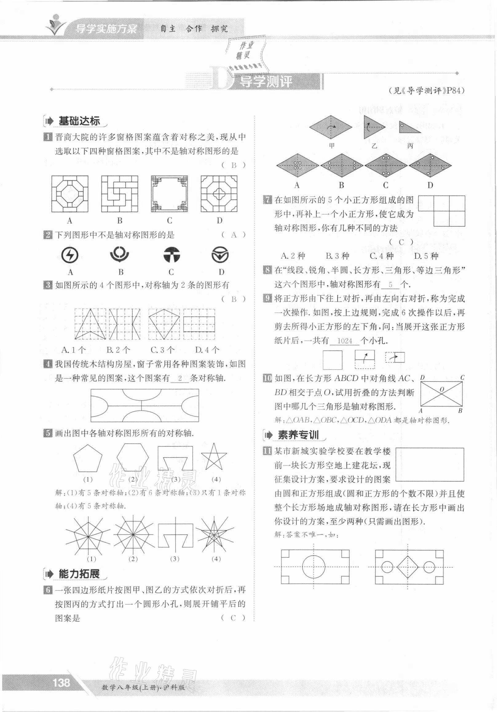 注:目前有些书本章节名称可能整理的还不是很完善,但都是按照顺序排列的,请同学们按照顺序仔细查找。练习册 2021年金太阳导学测评八年级数学上册沪科版 答案主要是用来给同学们做完题方便对答案用的,请勿直接抄袭。