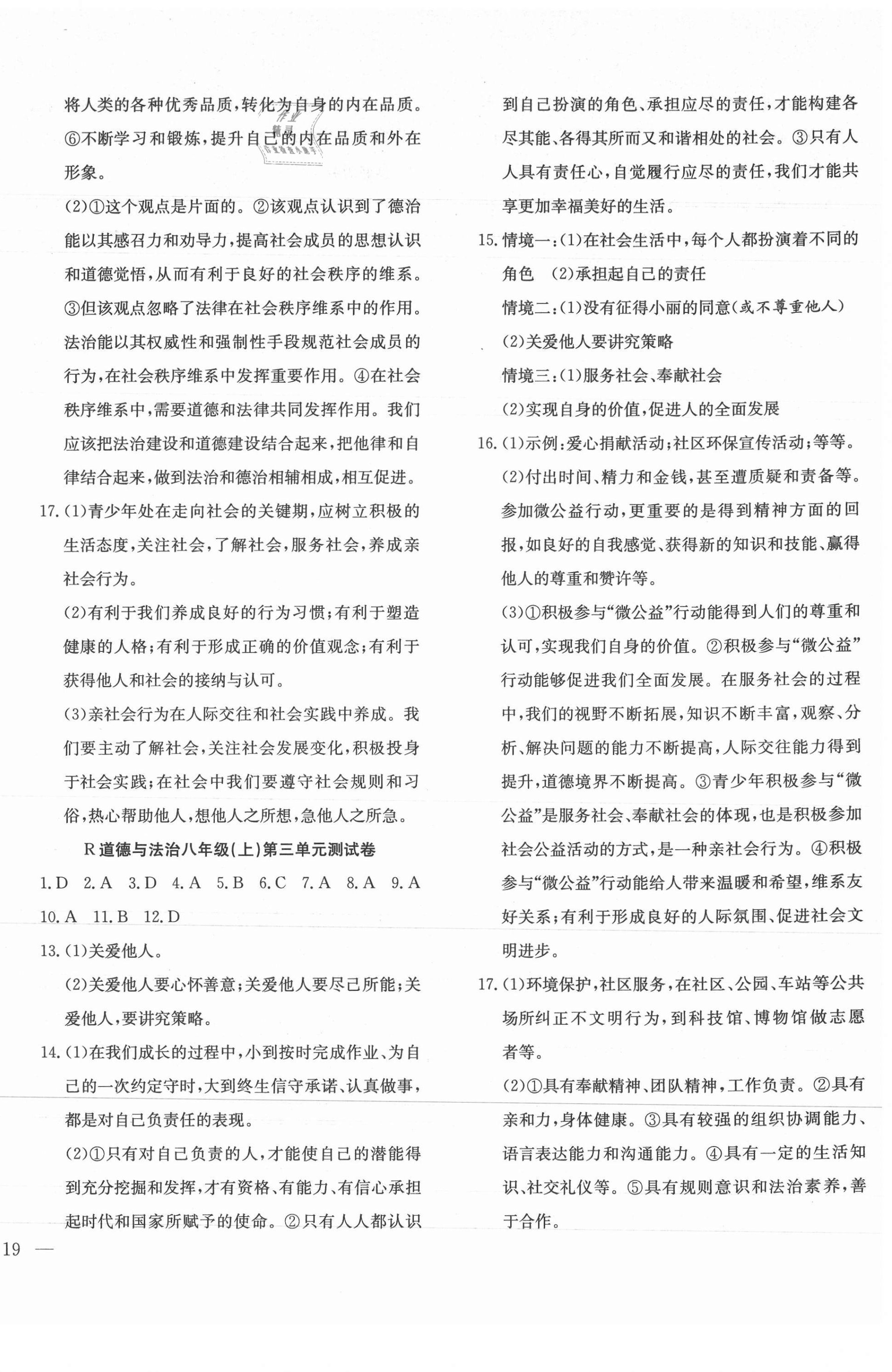 注:目前有些书本章节名称可能整理的还不是很完善,但都是按照顺序排列的,请同学们按照顺序仔细查找。练习册 2021年体验型学案八年级道德与法治上册人教版 答案主要是用来给同学们做完题方便对答案用的,请勿直接抄袭。
