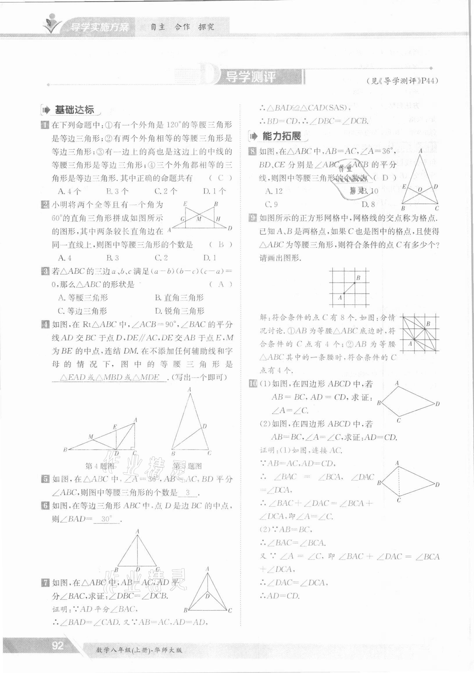 注:目前有些书本章节名称可能整理的还不是很完善,但都是按照顺序排列的,请同学们按照顺序仔细查找。练习册 2021年金太阳导学测评八年级数学上册华师大版 答案主要是用来给同学们做完题方便对答案用的,请勿直接抄袭。