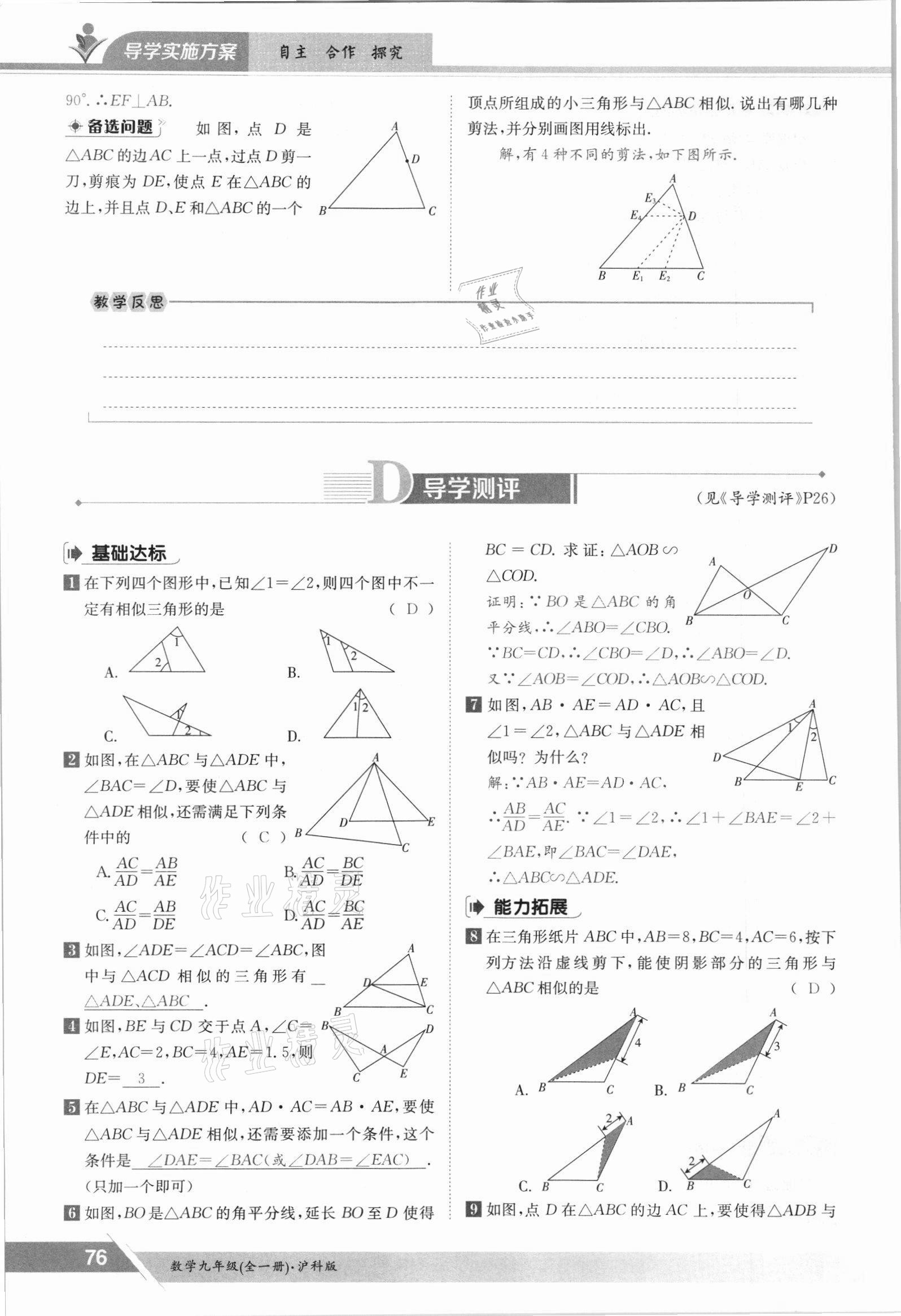 2021年金太阳导学测评九年级数学全一册沪科版