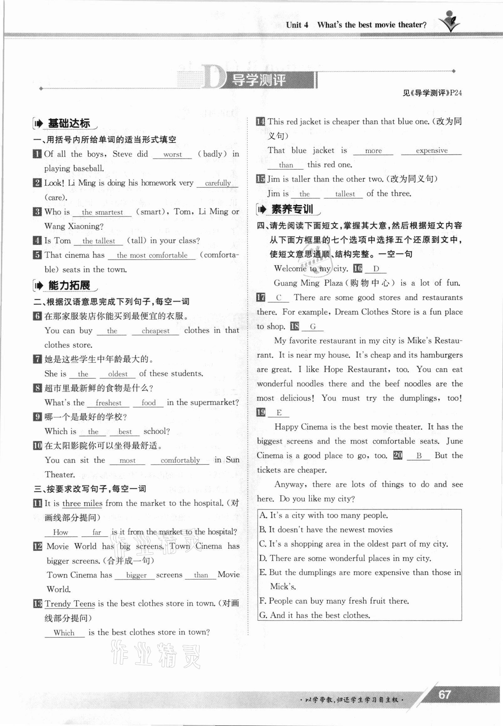 注:目前有些书本章节名称可能整理的还不是很完善,但都是按照顺序排列的,请同学们按照顺序仔细查找。练习册 2021年金太阳导学测评八年级英语上册人教版 答案主要是用来给同学们做完题方便对答案用的,请勿直接抄袭。