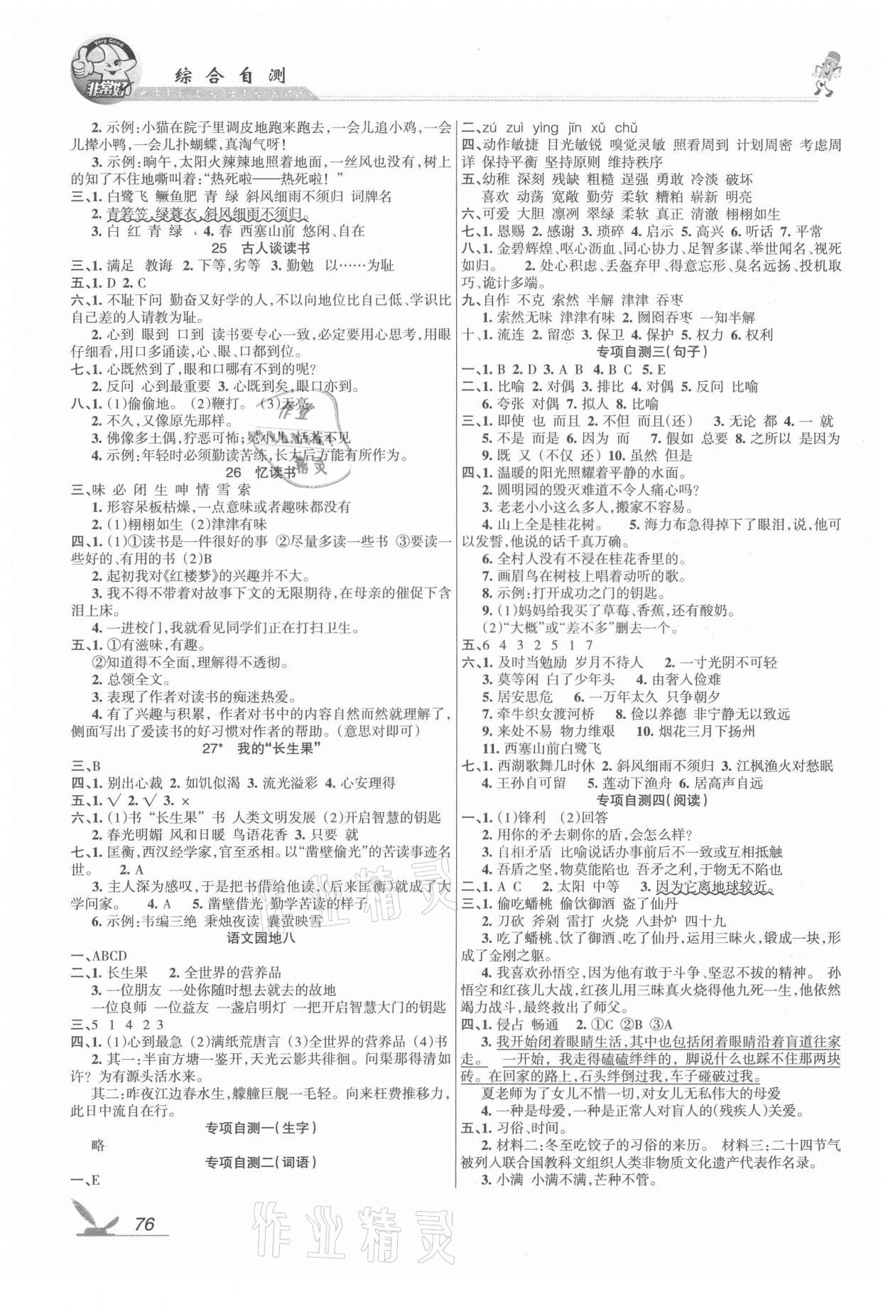 注:目前有些书本章节名称可能整理的还不是很完善,但都是按照顺序排列的,请同学们按照顺序仔细查找。练习册 2021年综合自测五年级语文上册人教版 答案主要是用来给同学们做完题方便对答案用的,请勿直接抄袭。