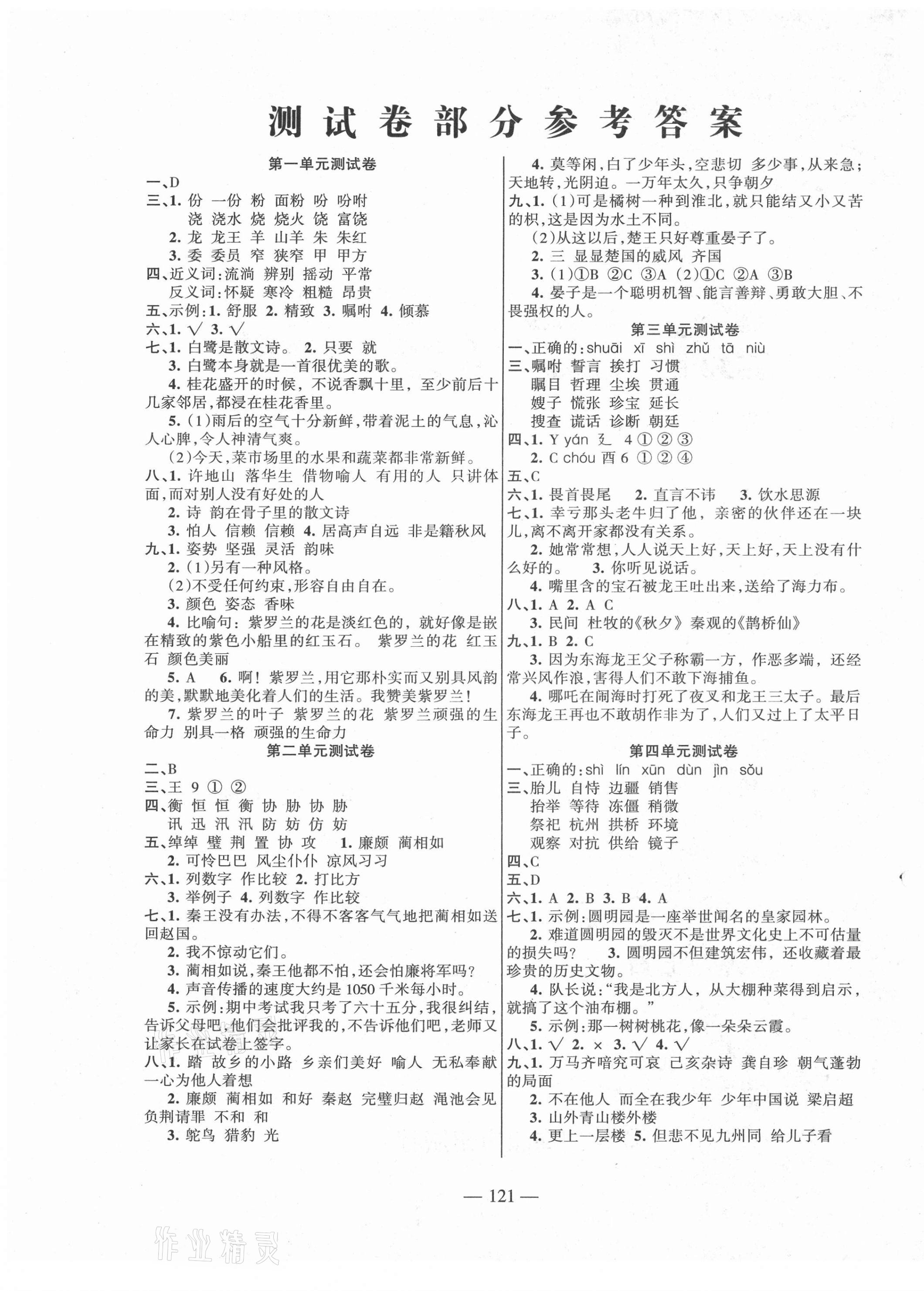 注:目前有些书本章节名称可能整理的还不是很完善,但都是按照顺序排列的,请同学们按照顺序仔细查找。练习册 2021年综合自测五年级语文上册人教版 答案主要是用来给同学们做完题方便对答案用的,请勿直接抄袭。
