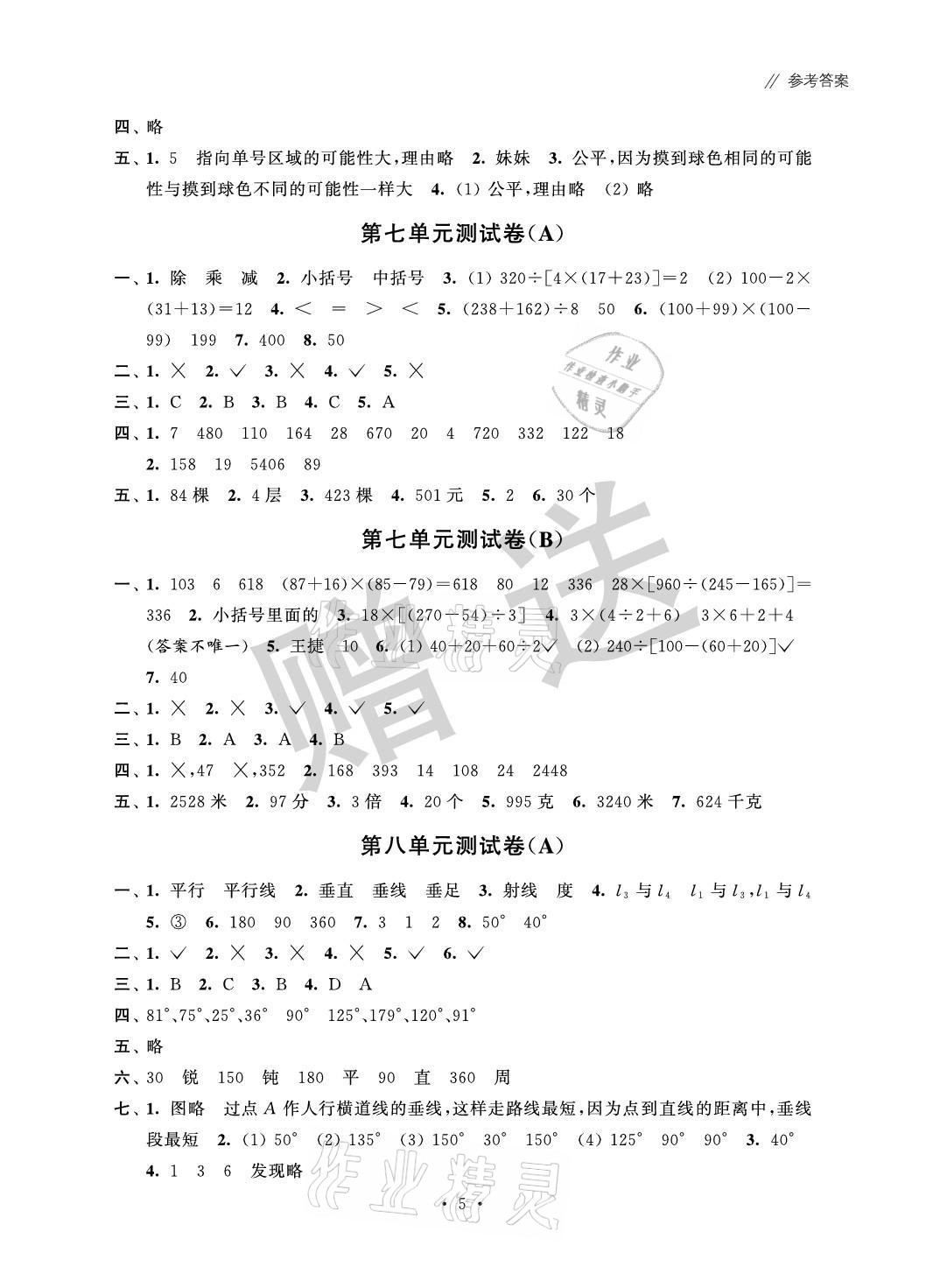 注:目前有些书本章节名称可能整理的还不是很完善,但都是按照顺序排列的,请同学们按照顺序仔细查找。练习册 2021年欢乐校园成长大本营小学数学四年级上册苏教版 答案主要是用来给同学们做完题方便对答案用的,请勿直接抄袭。