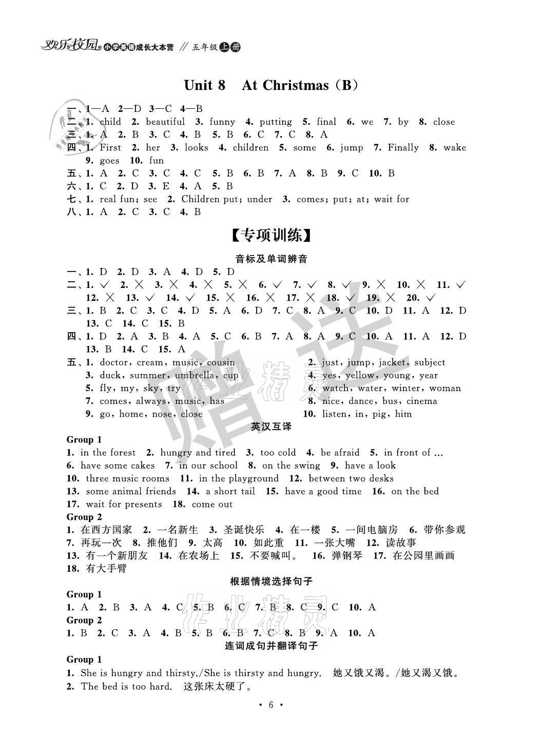 注:目前有些书本章节名称可能整理的还不是很完善,但都是按照顺序排列的,请同学们按照顺序仔细查找。练习册 2021年欢乐校园小学英语成长大本营五年级上册译林版 答案主要是用来给同学们做完题方便对答案用的,请勿直接抄袭。