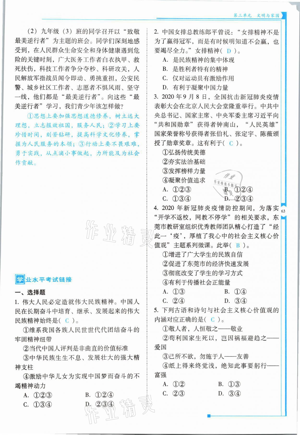 注:目前有些书本章节名称可能整理的还不是很完善,但都是按照顺序排列的,请同学们按照顺序仔细查找。练习册 2021年云南省标准教辅优佳学案九年级道德与法治全一册人教版 答案主要是用来给同学们做完题方便对答案用的,请勿直接抄袭。
