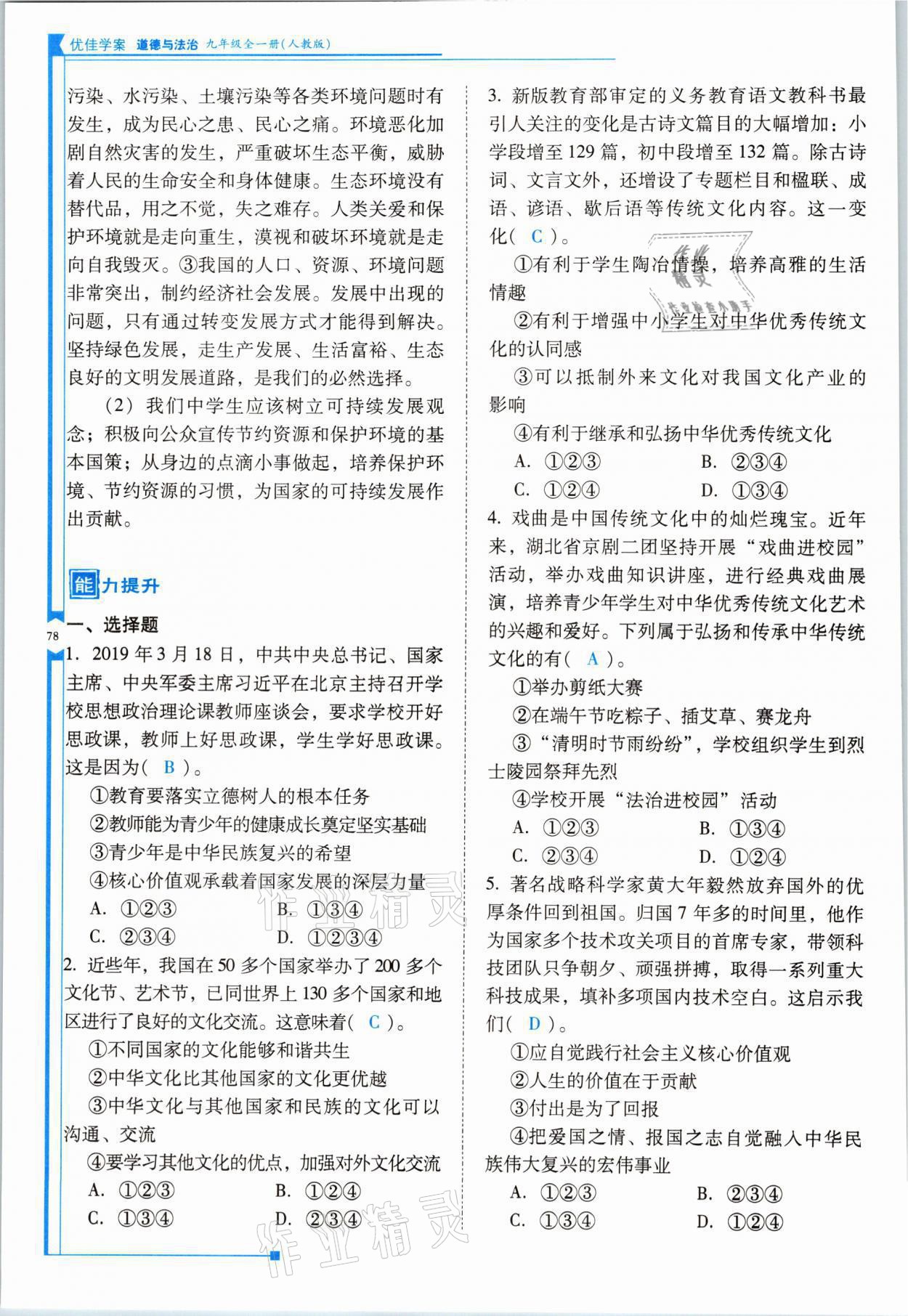 注:目前有些书本章节名称可能整理的还不是很完善,但都是按照顺序排列的,请同学们按照顺序仔细查找。练习册 2021年云南省标准教辅优佳学案九年级道德与法治全一册人教版 答案主要是用来给同学们做完题方便对答案用的,请勿直接抄袭。