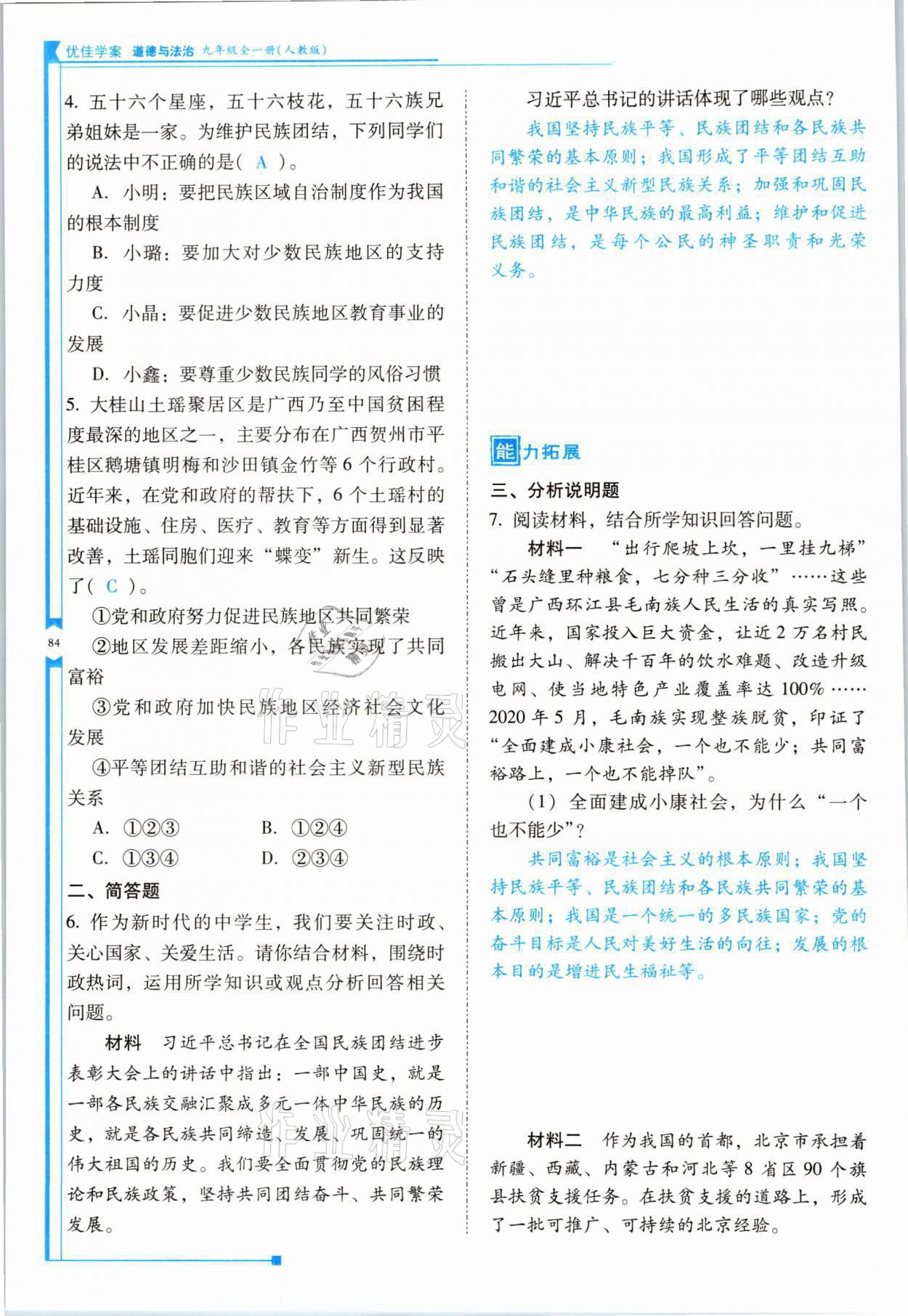 注:目前有些书本章节名称可能整理的还不是很完善,但都是按照顺序排列的,请同学们按照顺序仔细查找。练习册 2021年云南省标准教辅优佳学案九年级道德与法治全一册人教版 答案主要是用来给同学们做完题方便对答案用的,请勿直接抄袭。