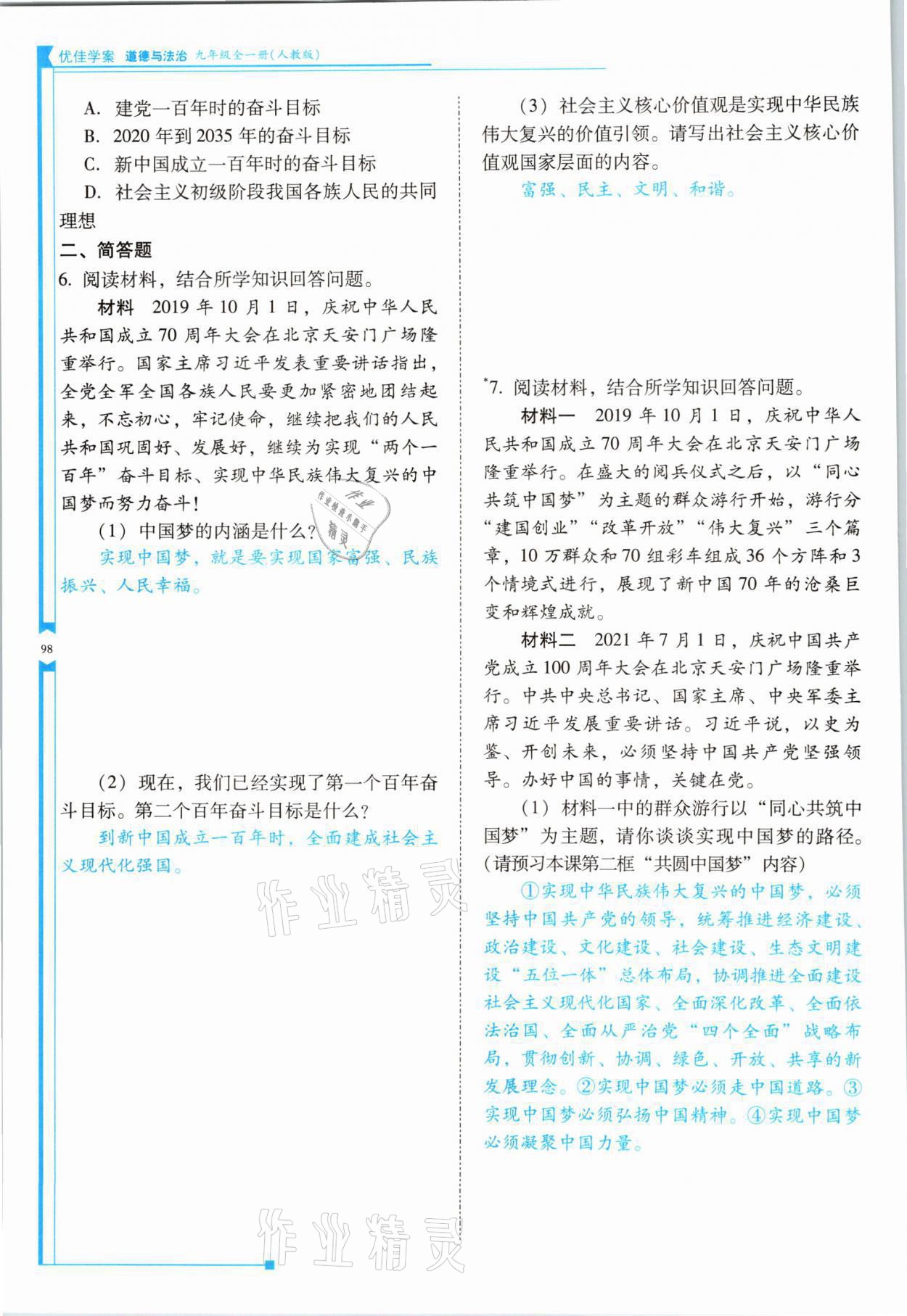 - 参考答案第98页