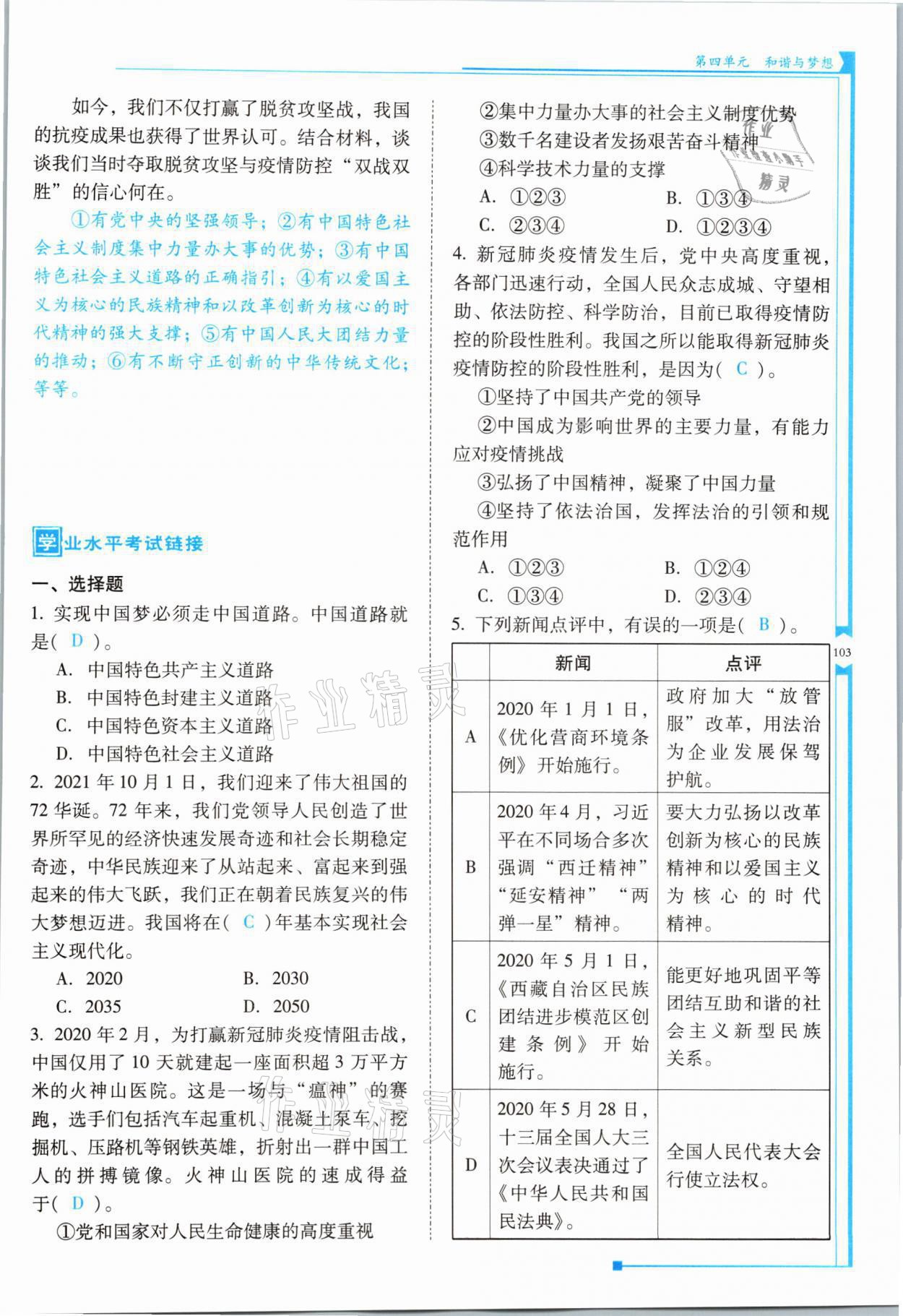 注:目前有些书本章节名称可能整理的还不是很完善,但都是按照顺序排列的,请同学们按照顺序仔细查找。练习册 2021年云南省标准教辅优佳学案九年级道德与法治全一册人教版 答案主要是用来给同学们做完题方便对答案用的,请勿直接抄袭。