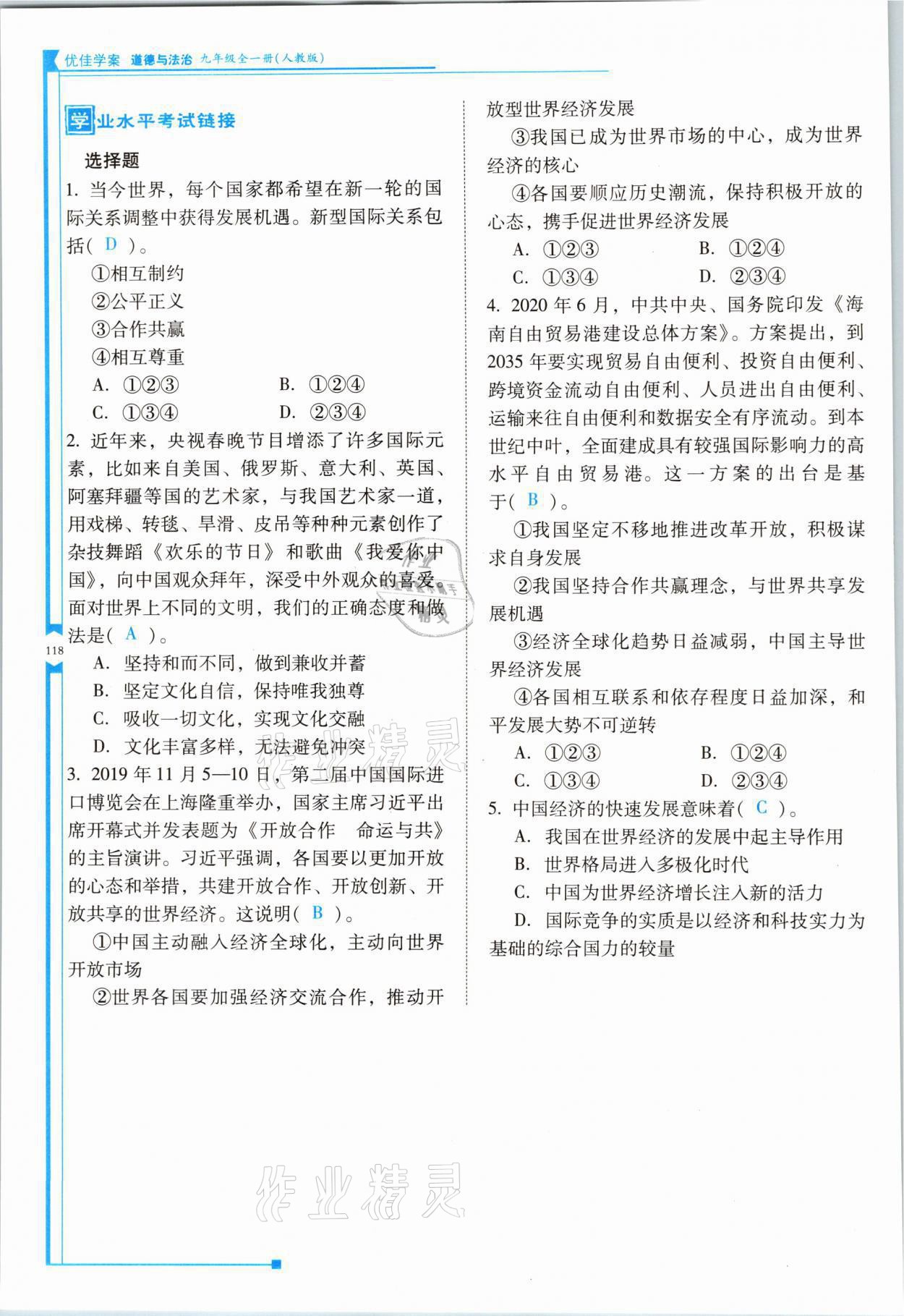 2021年云南省标准教辅优佳学案九年级道德与法治全一册人教版