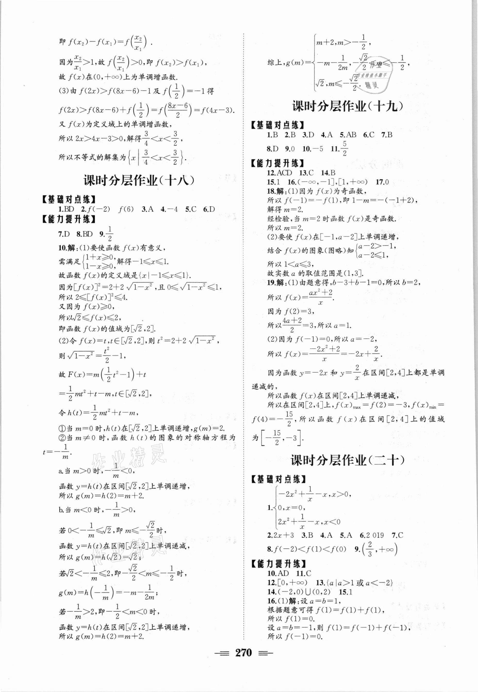 注:目前有些书本章节名称可能整理的还不是很完善,但都是按照顺序排列的,请同学们按照顺序仔细查找。练习册 2021年长江作业本同步练习册高中数学必修1人教版 答案主要是用来给同学们做完题方便对答案用的,请勿直接抄袭。