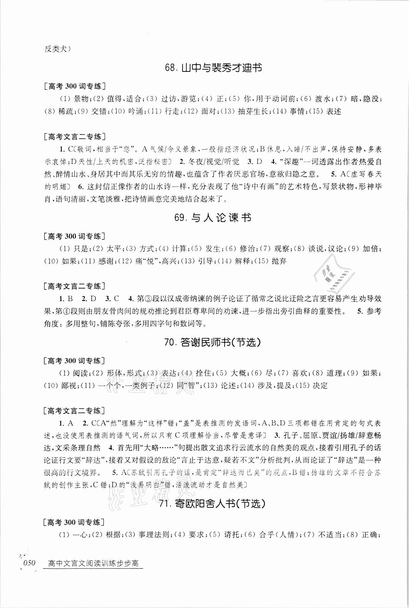 注:目前有些书本章节名称可能整理的还不是很完善,但都是按照顺序排列的,请同学们按照顺序仔细查找。练习册 2021年高中文言文阅读训练步步高高中语文全一册人教版 答案主要是用来给同学们做完题方便对答案用的,请勿直接抄袭。