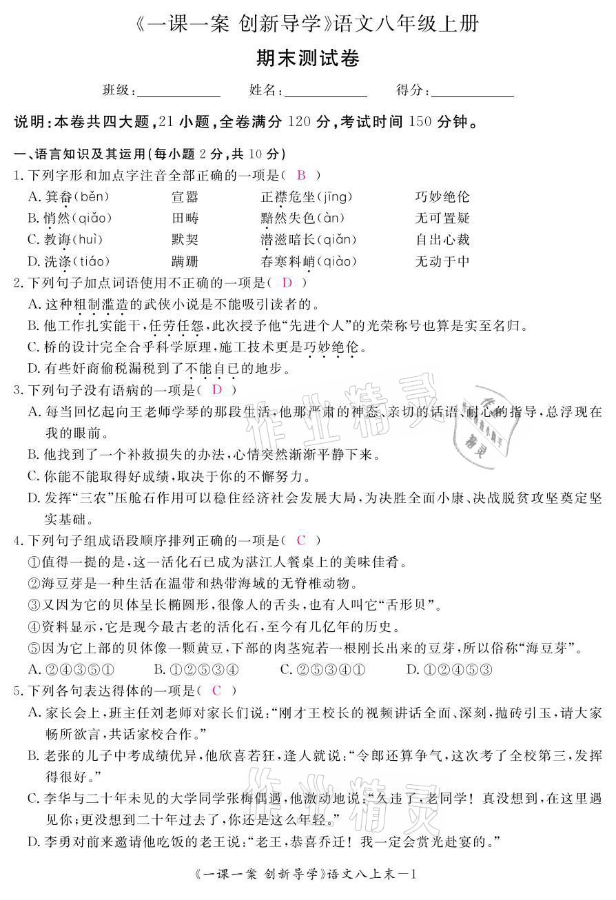 - 参考答案第8页