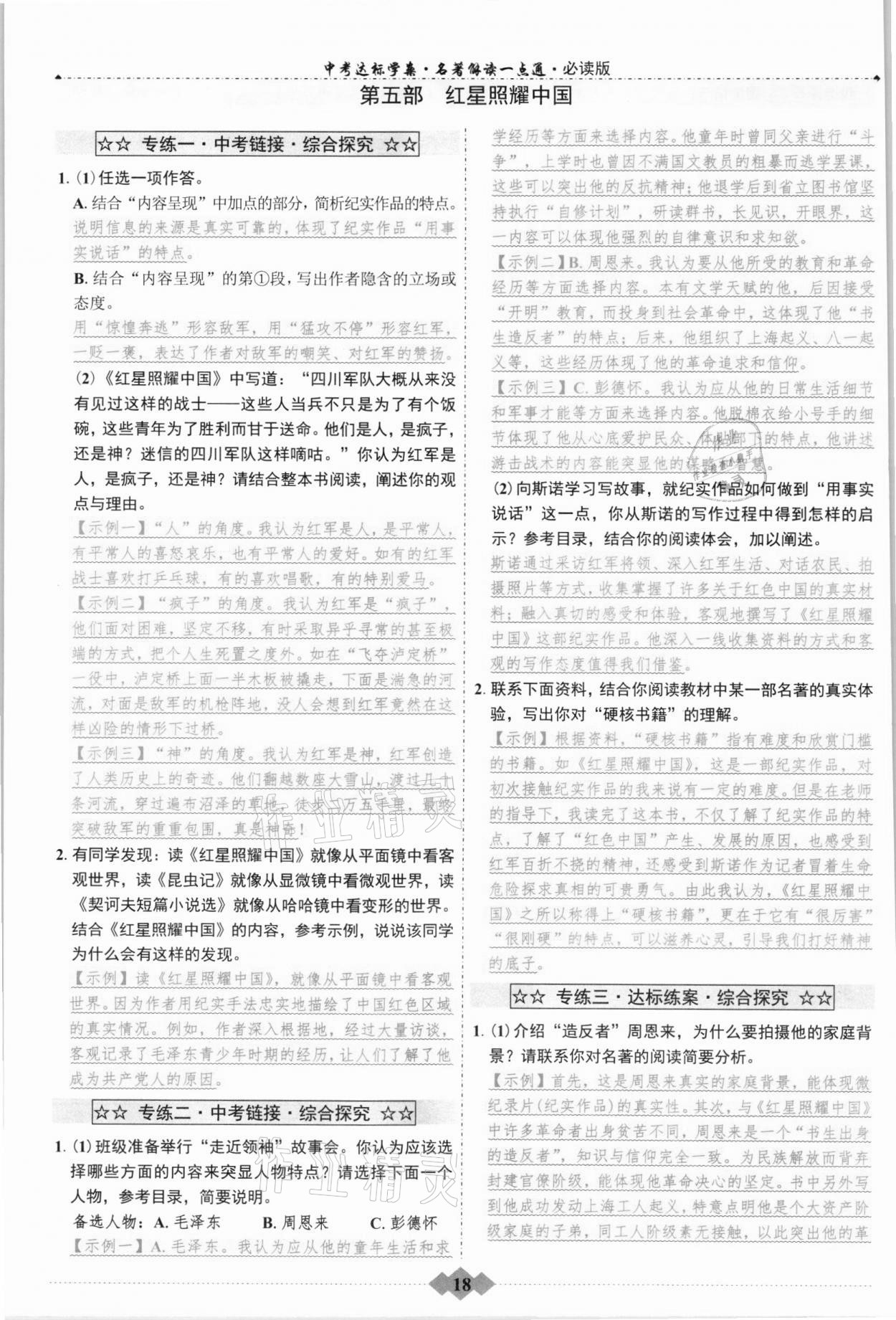 注:目前有些书本章节名称可能整理的还不是很完善,但都是按照顺序排列的,请同学们按照顺序仔细查找。练习册 2021年达标学案名著解读一点通九年级语文人教版浙江专版 答案主要是用来给同学们做完题方便对答案用的,请勿直接抄袭。