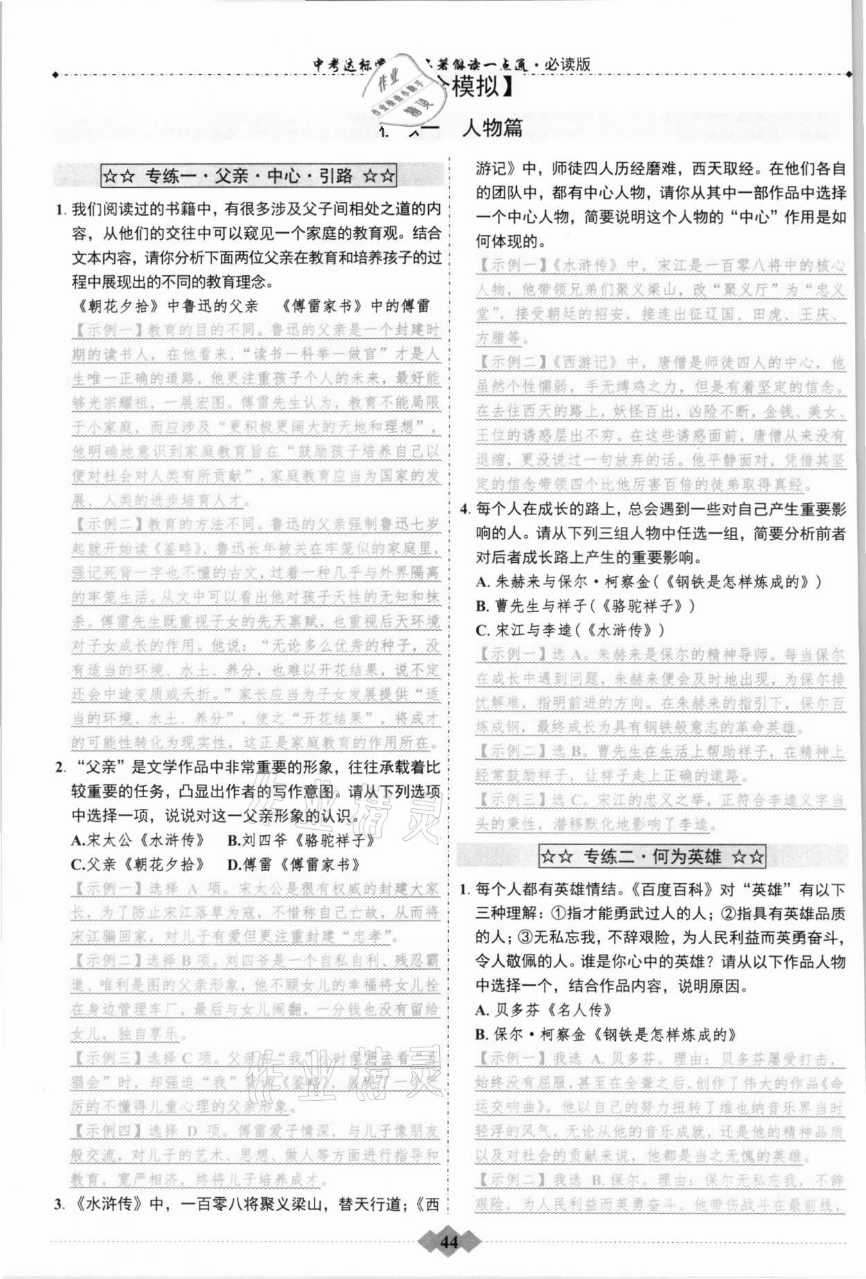 2021年达标学案名著解读一点通九年级语文人教版浙江专版