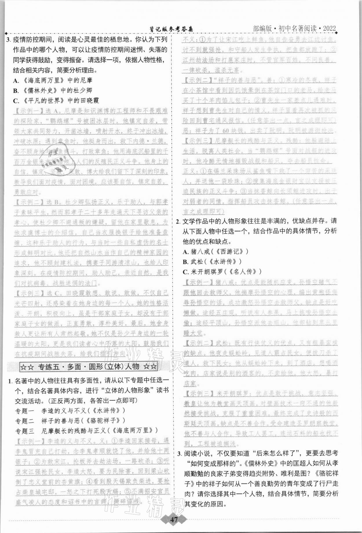 注:目前有些书本章节名称可能整理的还不是很完善,但都是按照顺序排列的,请同学们按照顺序仔细查找。练习册 2021年达标学案名著解读一点通九年级语文人教版浙江专版 答案主要是用来给同学们做完题方便对答案用的,请勿直接抄袭。