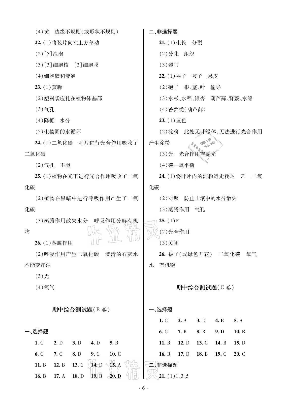 注:目前有些书本章节名称可能整理的还不是很完善,但都是按照顺序排列的,请同学们按照顺序仔细查找。练习册 2021年单元自测试卷七年级生物上册人教版 答案主要是用来给同学们做完题方便对答案用的,请勿直接抄袭。