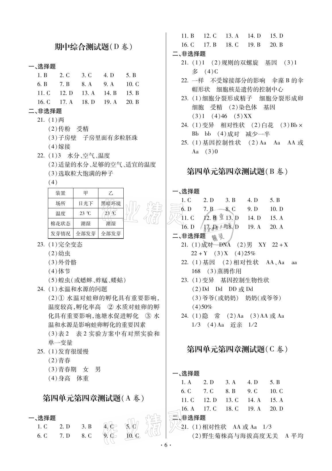 注:目前有些书本章节名称可能整理的还不是很完善,但都是按照顺序排列的,请同学们按照顺序仔细查找。练习册 2021年单元自测试卷青岛出版社八年级生物上册济南版 答案主要是用来给同学们做完题方便对答案用的,请勿直接抄袭。