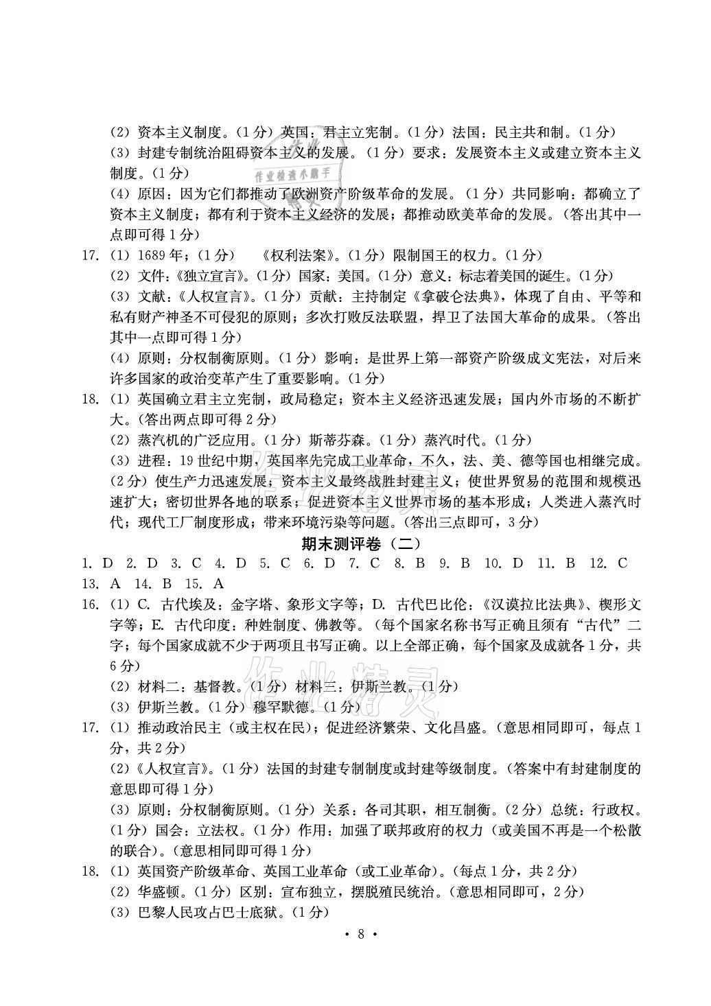 注:目前有些书本章节名称可能整理的还不是很完善,但都是按照顺序排列的,请同学们按照顺序仔细查找。练习册 2021年大显身手素质教育单元测评卷九年级历史人教版检5贵港专版 答案主要是用来给同学们做完题方便对答案用的,请勿直接抄袭。