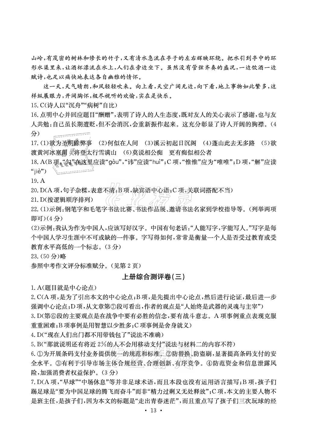 注:目前有些书本章节名称可能整理的还不是很完善,但都是按照顺序排列的,请同学们按照顺序仔细查找。练习册 2021年大显身手素质教育单元测评卷九年级语文上册人教版检2百色专版 答案主要是用来给同学们做完题方便对答案用的,请勿直接抄袭。