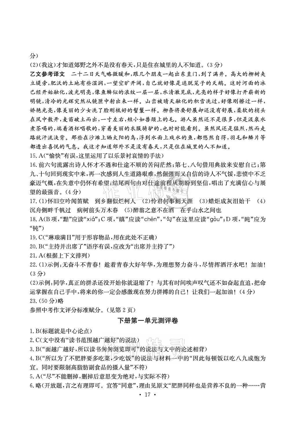 注:目前有些书本章节名称可能整理的还不是很完善,但都是按照顺序排列的,请同学们按照顺序仔细查找。练习册 2021年大显身手素质教育单元测评卷九年级语文上册人教版检2百色专版 答案主要是用来给同学们做完题方便对答案用的,请勿直接抄袭。