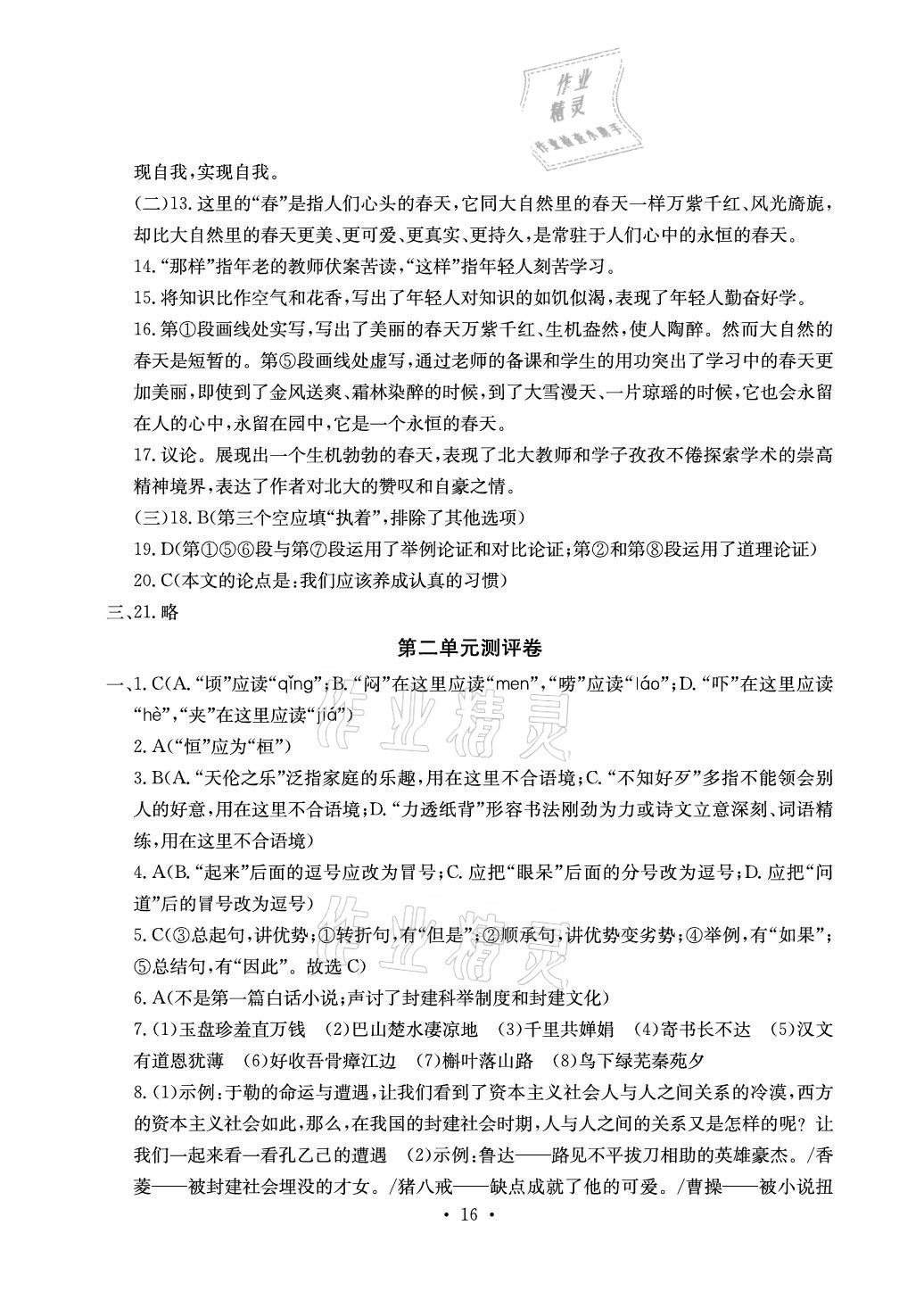 注:目前有些书本章节名称可能整理的还不是很完善,但都是按照顺序排列的,请同学们按照顺序仔细查找。练习册 2021年大显身手素质教育单元测评卷九年级语文人教版检5贵港专版 答案主要是用来给同学们做完题方便对答案用的,请勿直接抄袭。