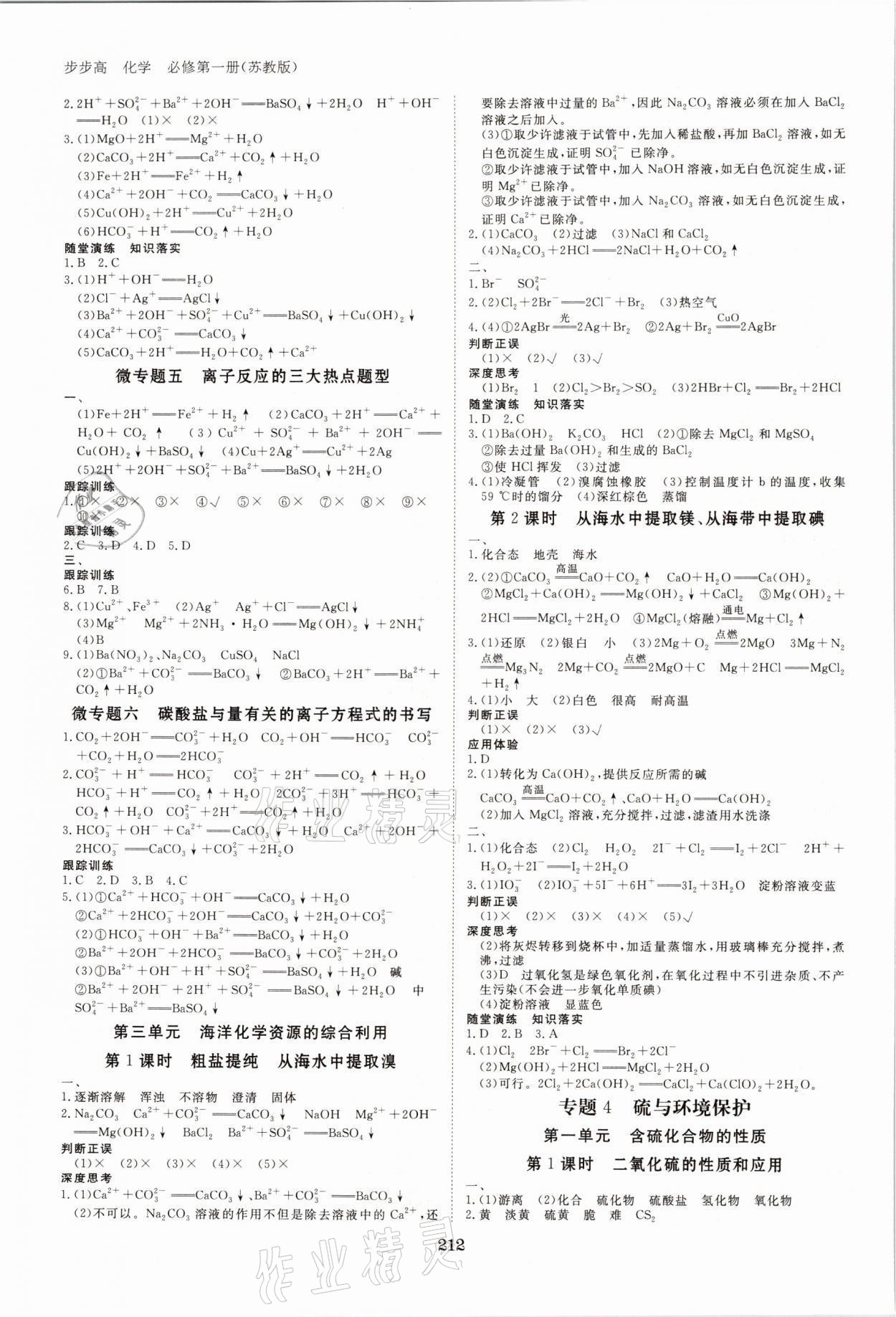注:目前有些书本章节名称可能整理的还不是很完善,但都是按照顺序排列的,请同学们按照顺序仔细查找。练习册 2021年步步高学习笔记化学必修第一册苏教版 答案主要是用来给同学们做完题方便对答案用的,请勿直接抄袭。