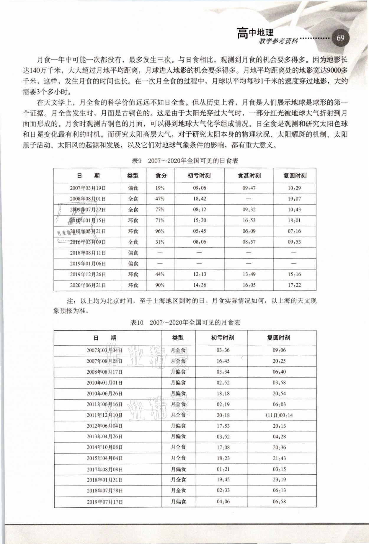 2021年教材课本高中地理必修1沪教版