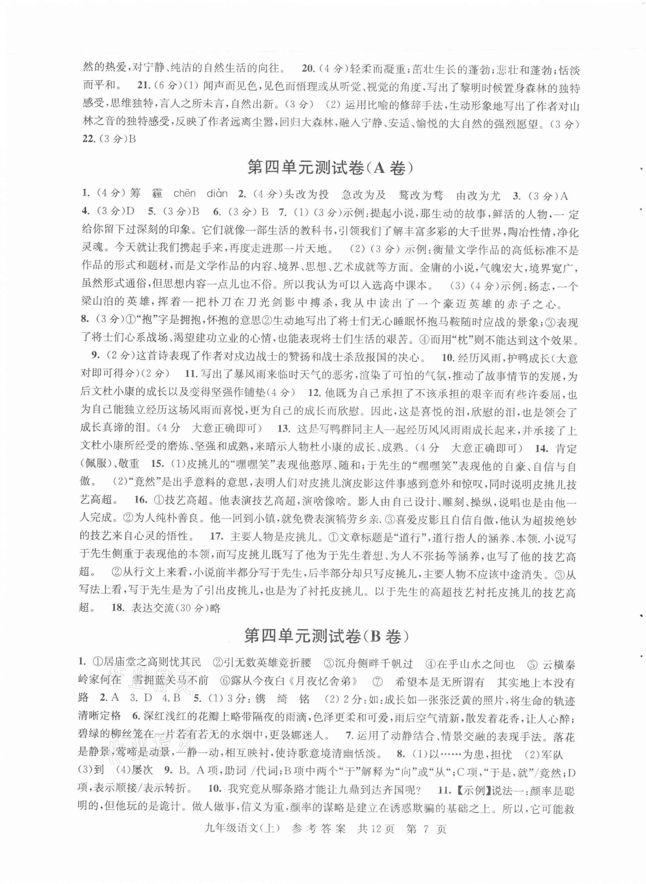 注:目前有些书本章节名称可能整理的还不是很完善,但都是按照顺序排列的,请同学们按照顺序仔细查找。练习册 2021年伴你学单元达标检测卷九年级语文上册人教版 答案主要是用来给同学们做完题方便对答案用的,请勿直接抄袭。