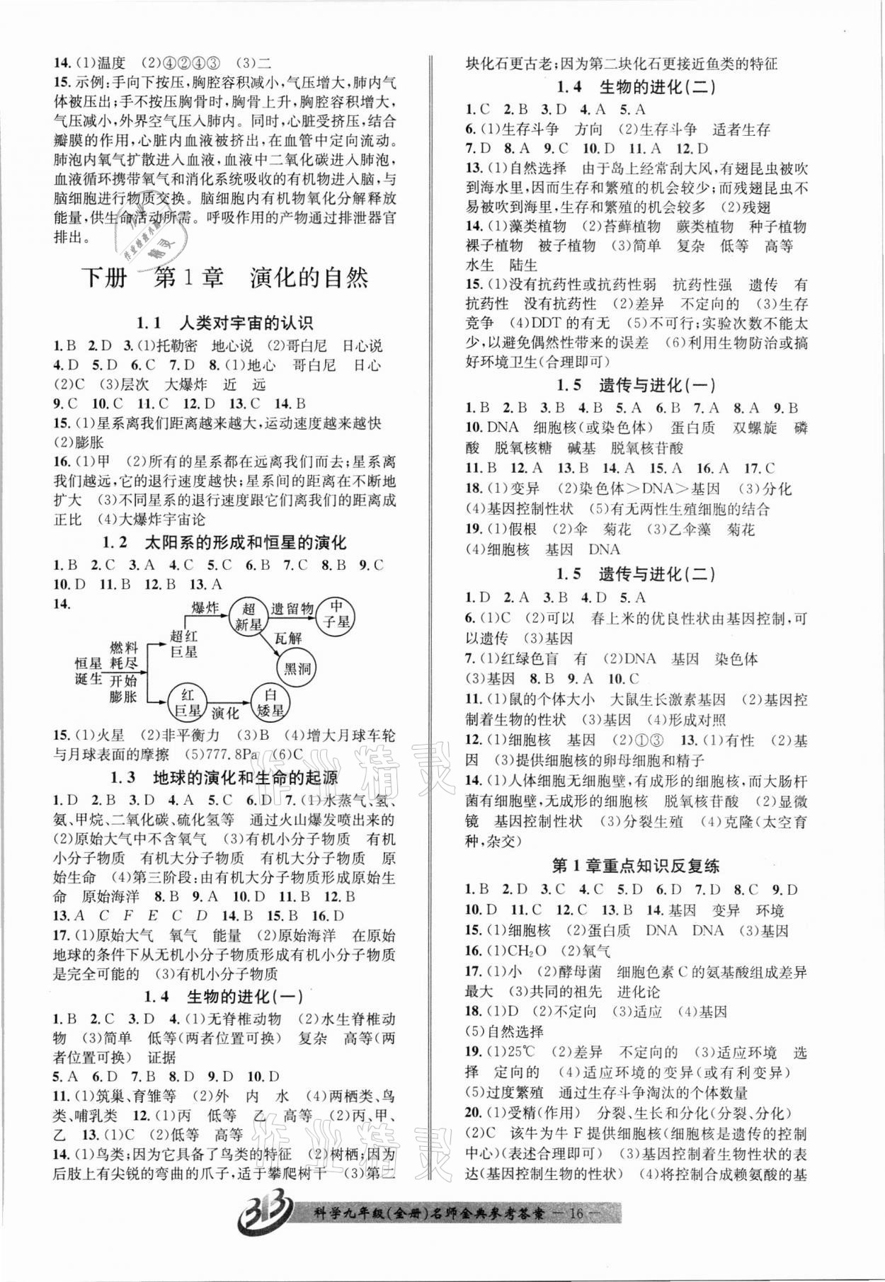 注:目前有些书本章节名称可能整理的还不是很完善,但都是按照顺序排列的,请同学们按照顺序仔细查找。练习册 2021年名师金典BFB初中课时优化九年级科学全一册浙教版新版 答案主要是用来给同学们做完题方便对答案用的,请勿直接抄袭。