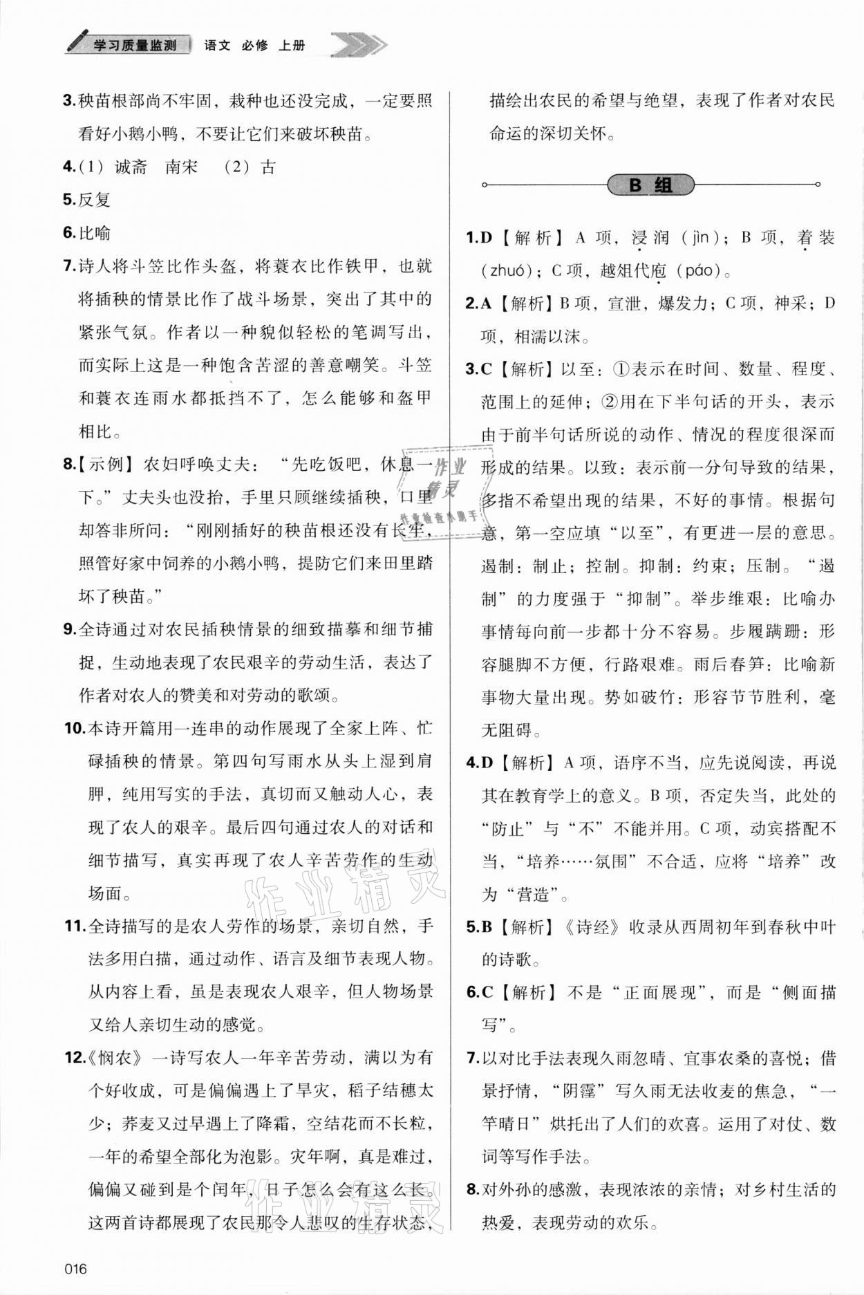 注:目前有些书本章节名称可能整理的还不是很完善,但都是按照顺序排列的,请同学们按照顺序仔细查找。练习册 2021年学习质量监测语文必修上册人教版 答案主要是用来给同学们做完题方便对答案用的,请勿直接抄袭。