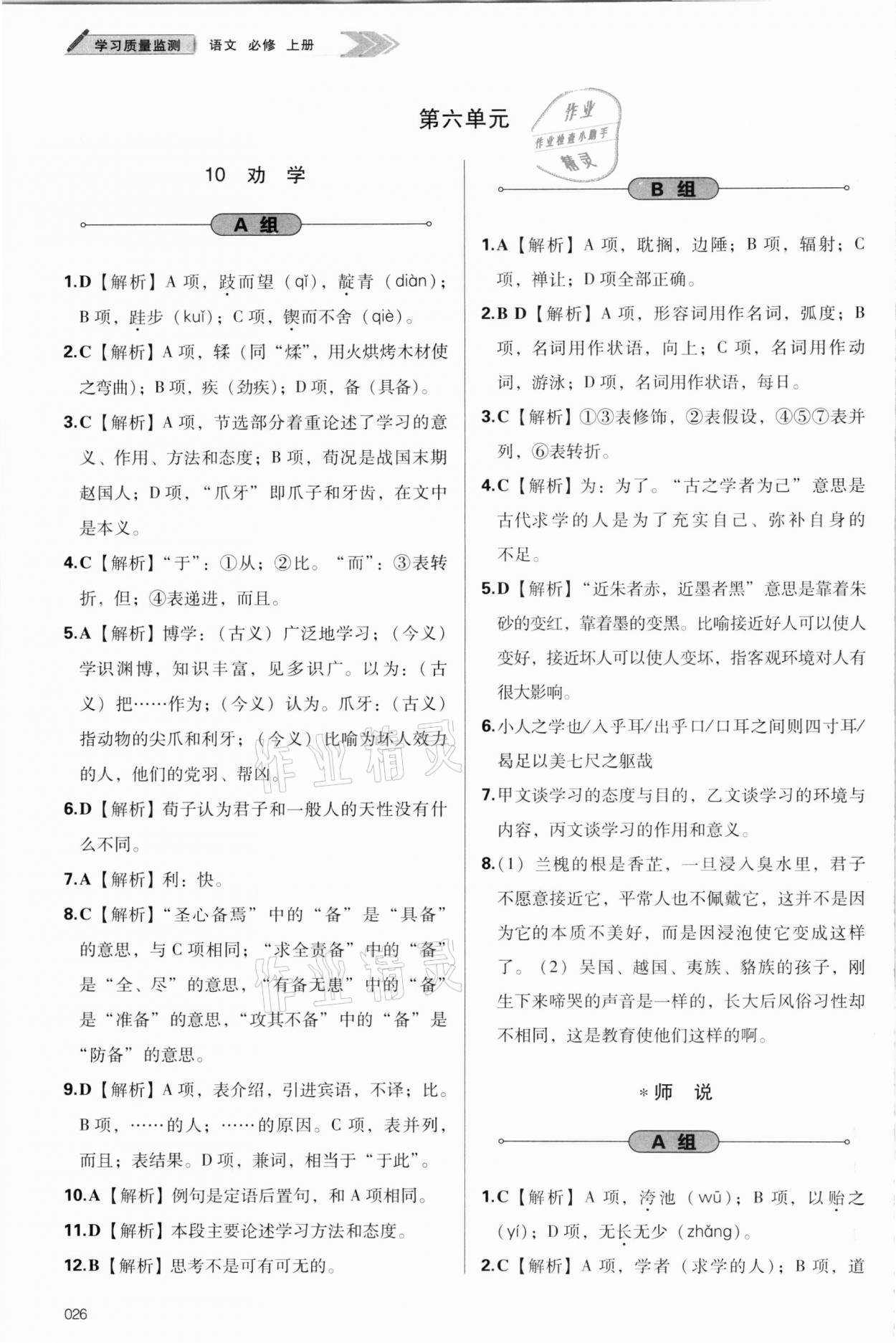 注:目前有些书本章节名称可能整理的还不是很完善,但都是按照顺序排列的,请同学们按照顺序仔细查找。练习册 2021年学习质量监测语文必修上册人教版 答案主要是用来给同学们做完题方便对答案用的,请勿直接抄袭。