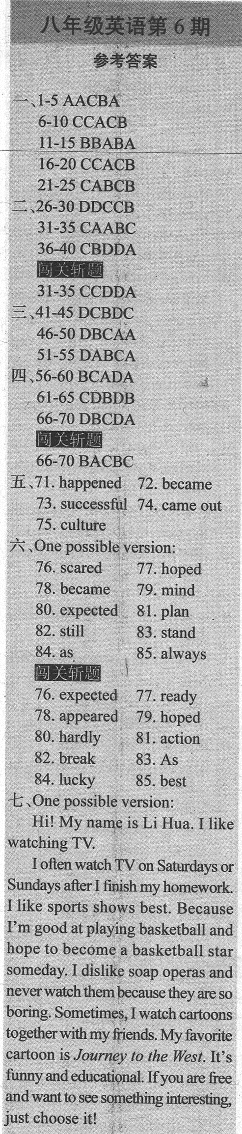 注:目前有些书本章节名称可能整理的还不是很完善,但都是按照顺序排列的,请同学们按照顺序仔细查找。练习册 2021年学习辅导报八年级英语人教版 答案主要是用来给同学们做完题方便对答案用的,请勿直接抄袭。