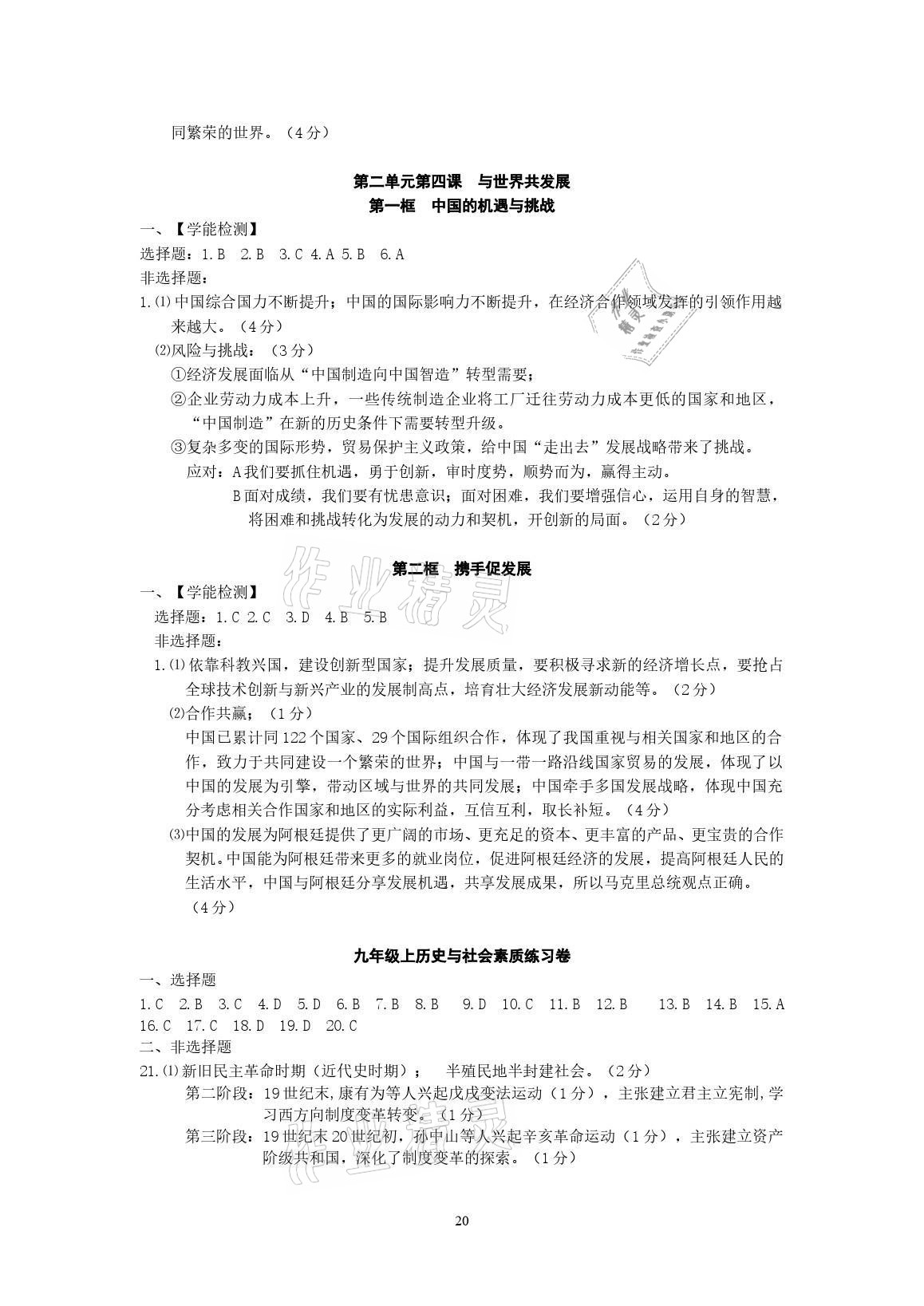 注:目前有些书本章节名称可能整理的还不是很完善,但都是按照顺序排列的,请同学们按照顺序仔细查找。练习册 2022年中考自主学习素质检测历史与社会道德与法治人教版 答案主要是用来给同学们做完题方便对答案用的,请勿直接抄袭。