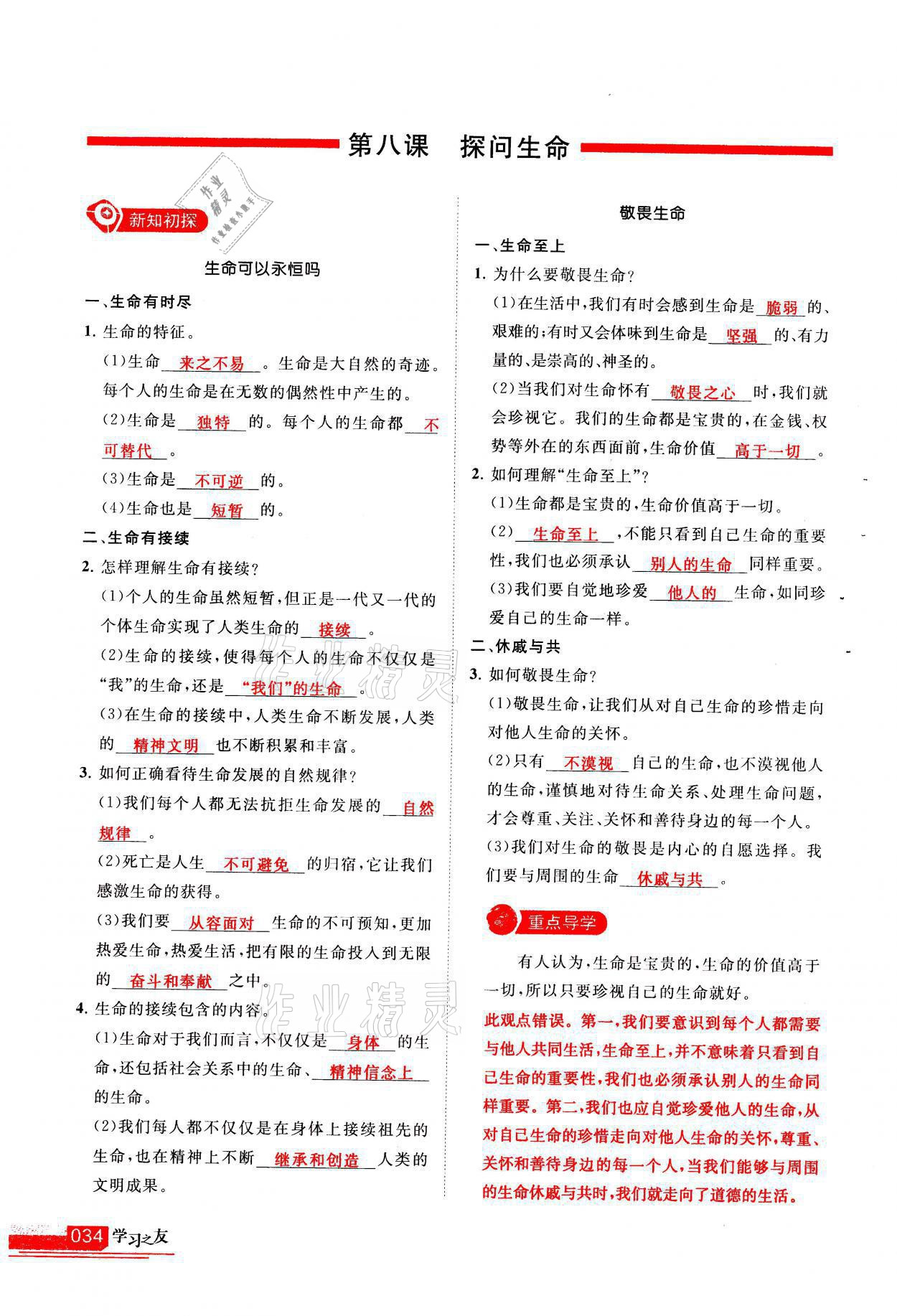 注:目前有些书本章节名称可能整理的还不是很完善,但都是按照顺序排列的,请同学们按照顺序仔细查找。练习册 2021年学习之友七年级道德与法治全一册人教版 答案主要是用来给同学们做完题方便对答案用的,请勿直接抄袭。