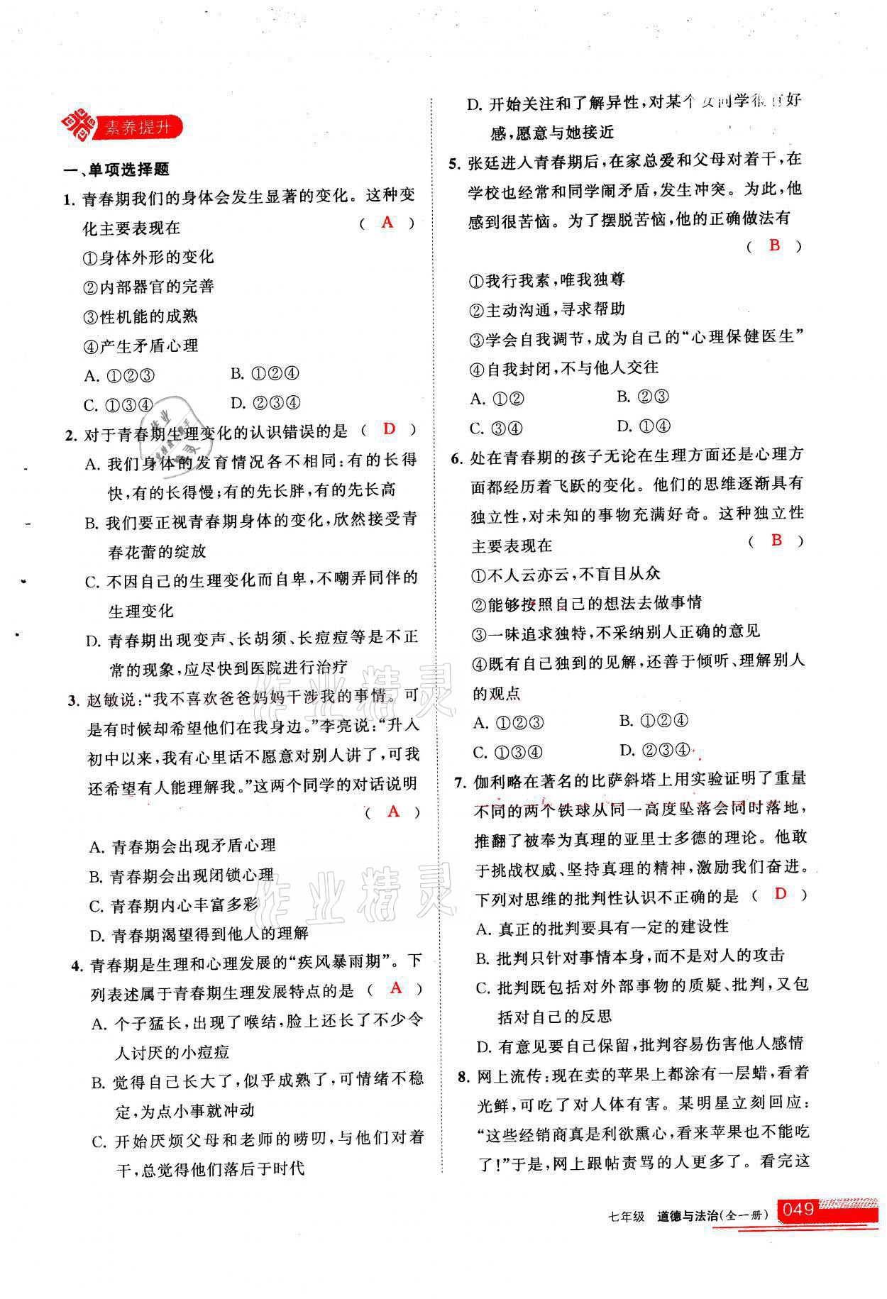 参考答案第49页