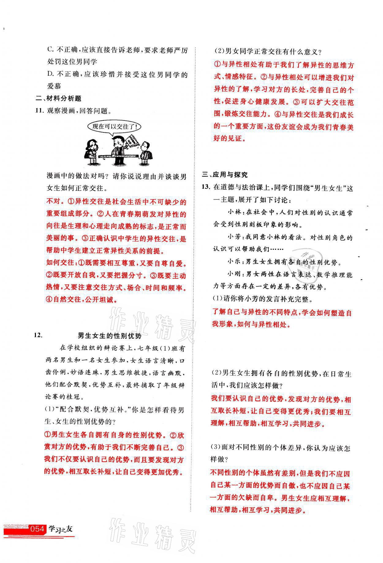 注:目前有些书本章节名称可能整理的还不是很完善,但都是按照顺序排列的,请同学们按照顺序仔细查找。练习册 2021年学习之友七年级道德与法治全一册人教版 答案主要是用来给同学们做完题方便对答案用的,请勿直接抄袭。